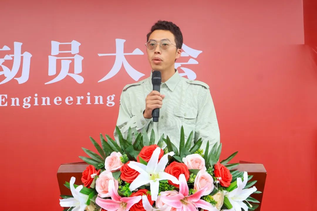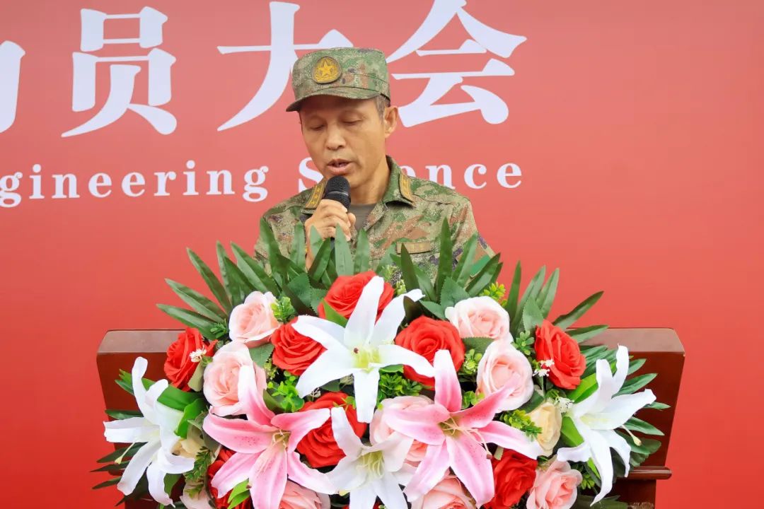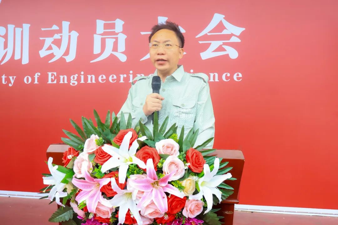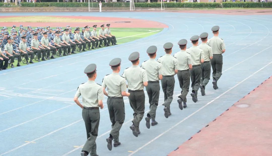 新生辅导员代表汤腾达发言。他强调,军训是新生迈入大学的第一堂实践课,不仅是一次体能训练,更是一次意志的磨砺、纪律的锻造和团队精神的熔炼。他希望新生们做一个自信的人,做一个拼搏的人,做一个有责任感的人。他鼓励同学们严守纪律、敢于吃苦、勇于争先、维护集体、虚心学习、保重身体,从军训中汲取人生智慧,铺就人生底色,奠定健康基础,在今后的生活中勤奋学习,勇于拼搏,实现自己的人生价值。