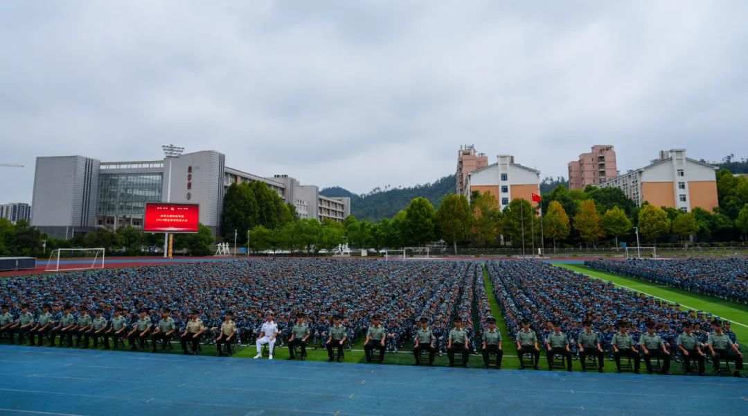 9月12日上午,武汉工程科技学院在田径场举行2024级新生军训动员大会。江夏区人民武装部政委刘泽安、陆军工程大学军械士官学校学员大队政委郑长伟,陆军工程大学军械士官学校何虎、曾晓宇,武汉工程科技学院党委副书记唐军国,党委常委、组织部部长刘美中,党委保卫部部长易荣伟、副部长王正,学生工作处副处长李迎,各学院党总支书记出席了本次大会。各学院团总支书记、新生辅导员、学长团队和全体2024级新生参加了本次大会。动员大会由校团委书记、学生工作处副处长张瑾主持。