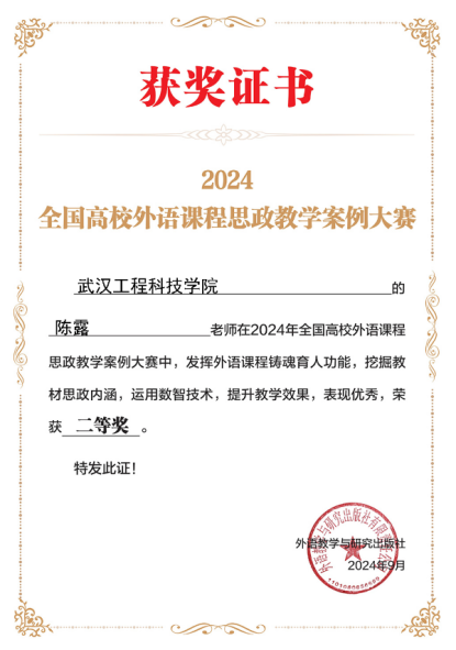 喜报!武工院教师获2024年全国高校外语课程思政教学案例大赛全国一等奖