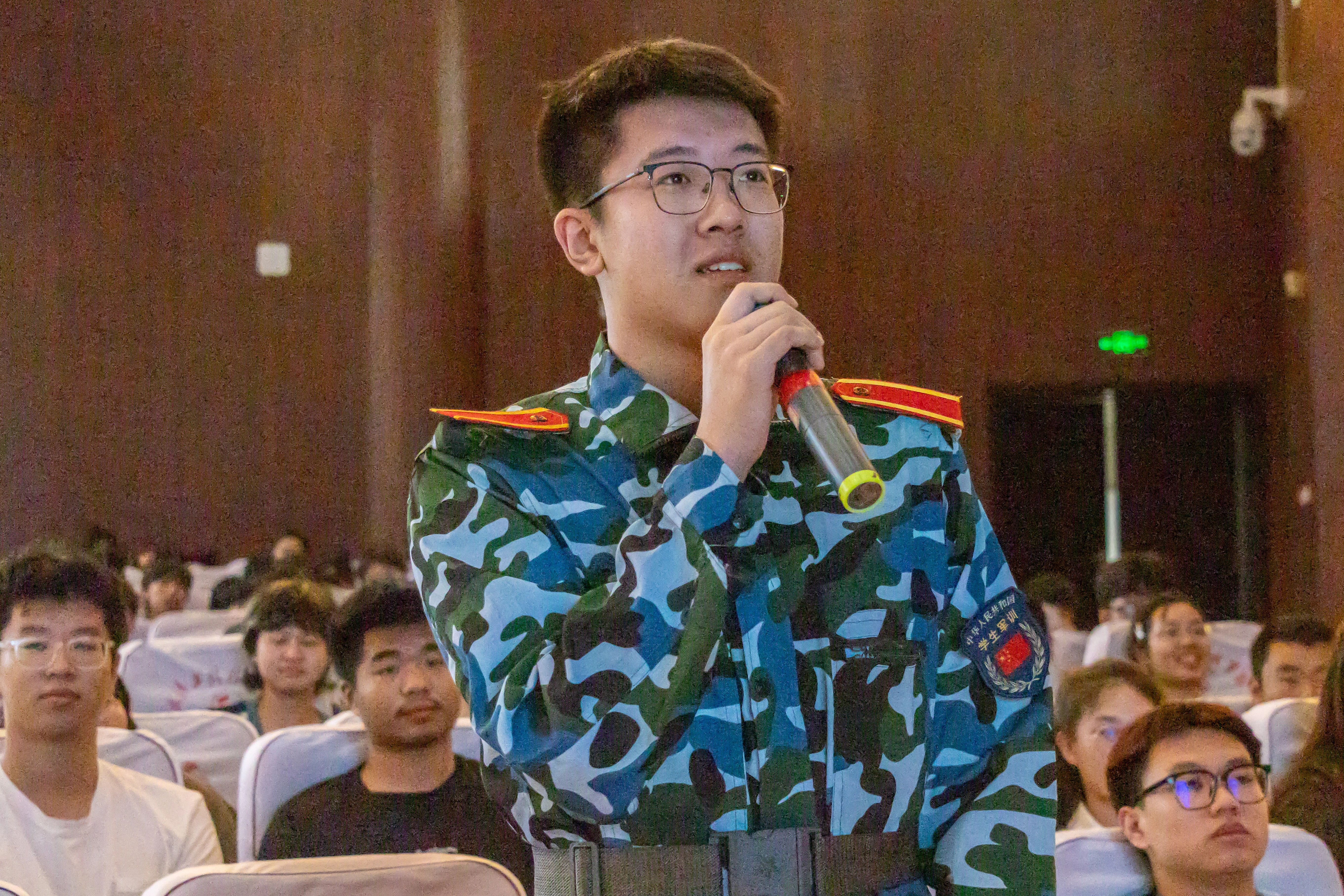 在交流环节,徐教授对24级计算机与人工智能学院国际实验班尹浩宇提出的研制嫦娥六号“月面国旗”的问题进行了亲切的回答;对艺术与传媒学院新生屈子皓提出的当代大学生怎样提升科研创新实践能力进行了悉心指导。