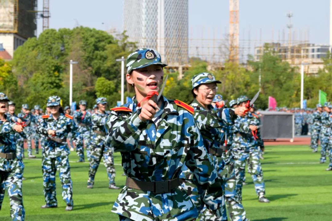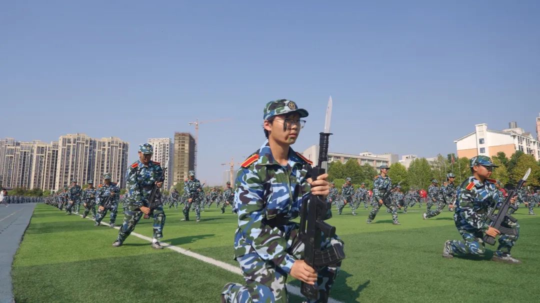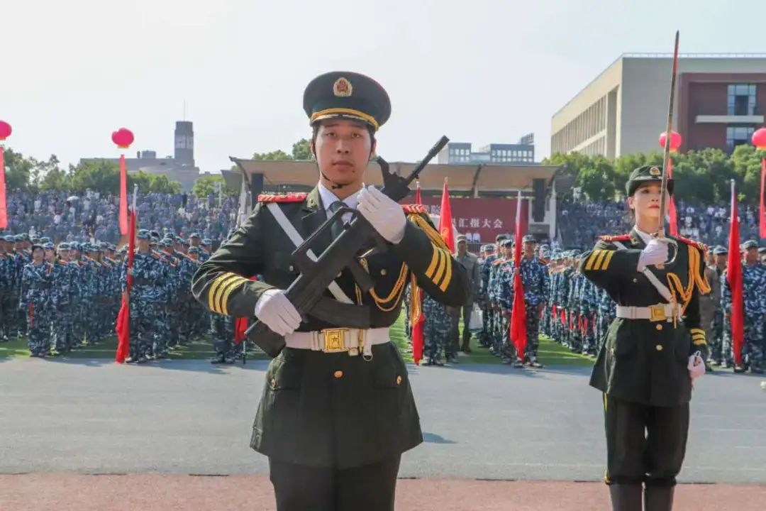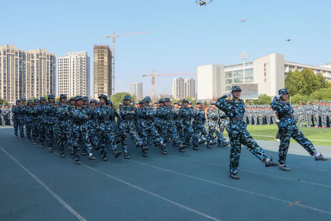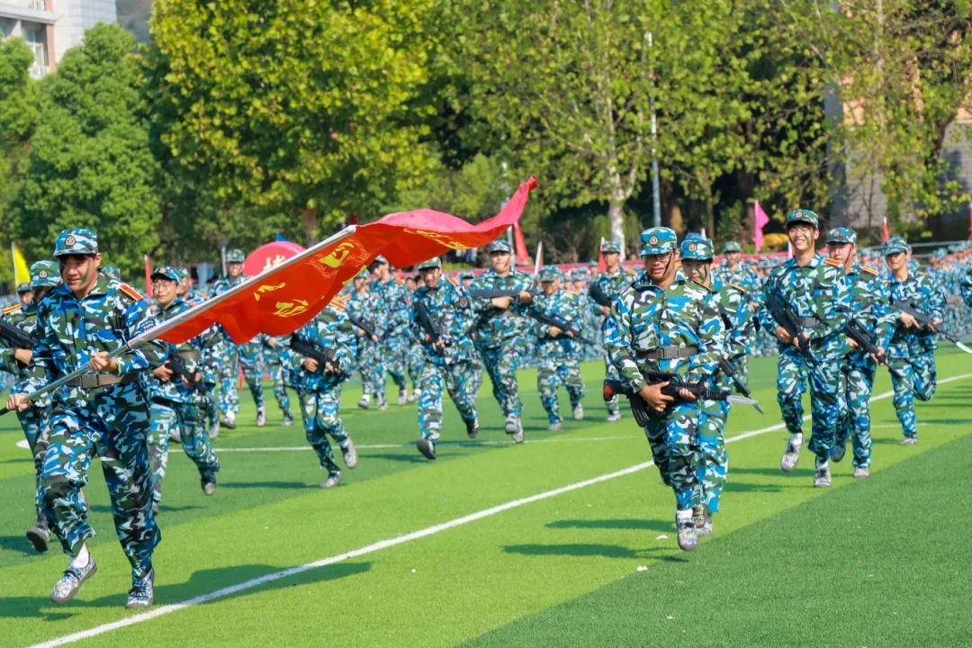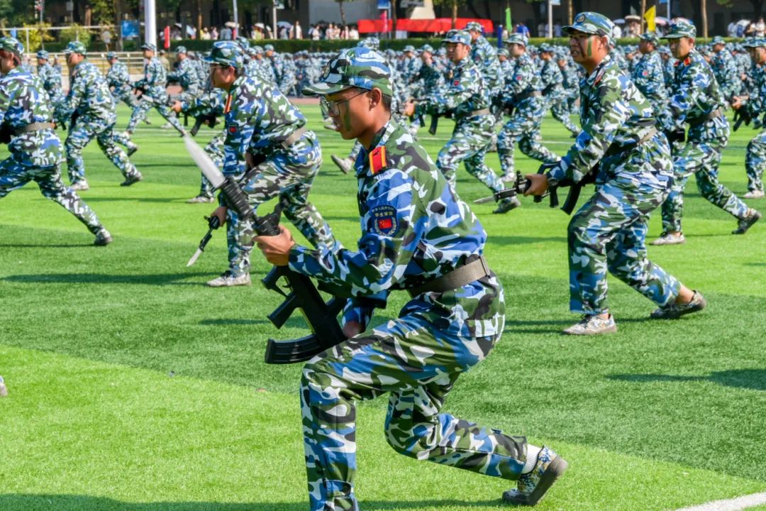 分列式进场,他们踏着整齐地步伐朝主席台走来,军容严整、意气风发。每一声呼号都响彻云霄,洋溢着青春的生机与活力。
