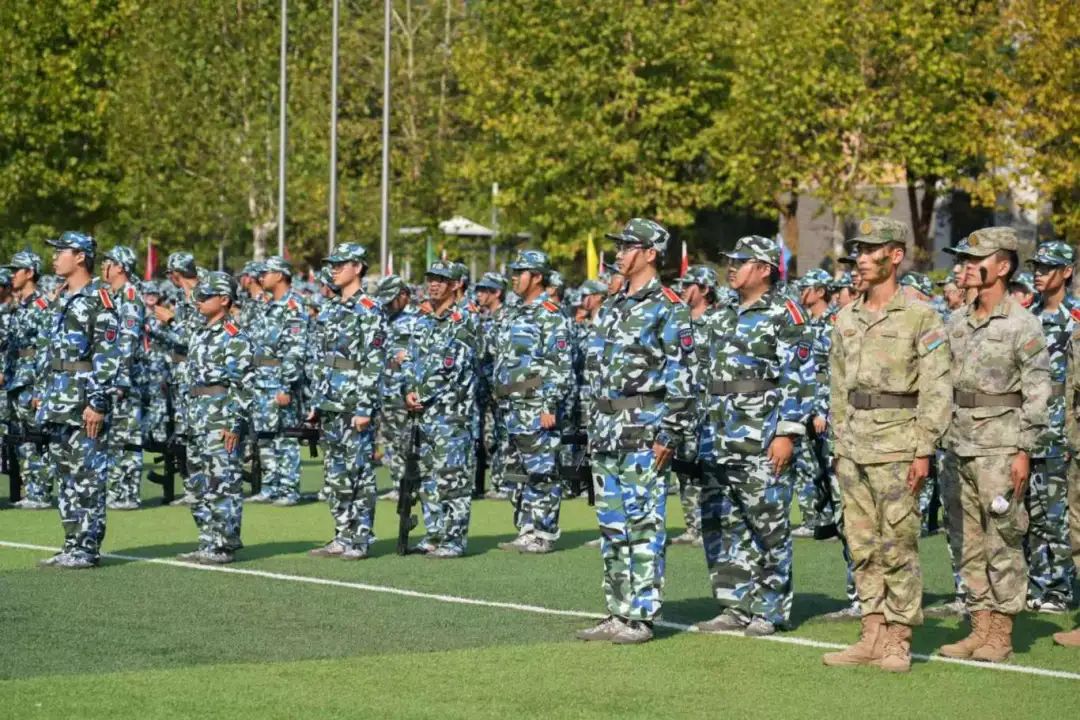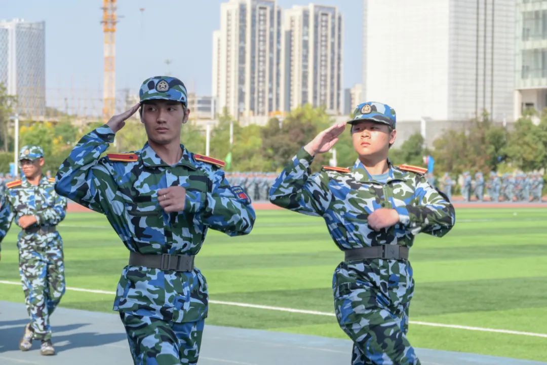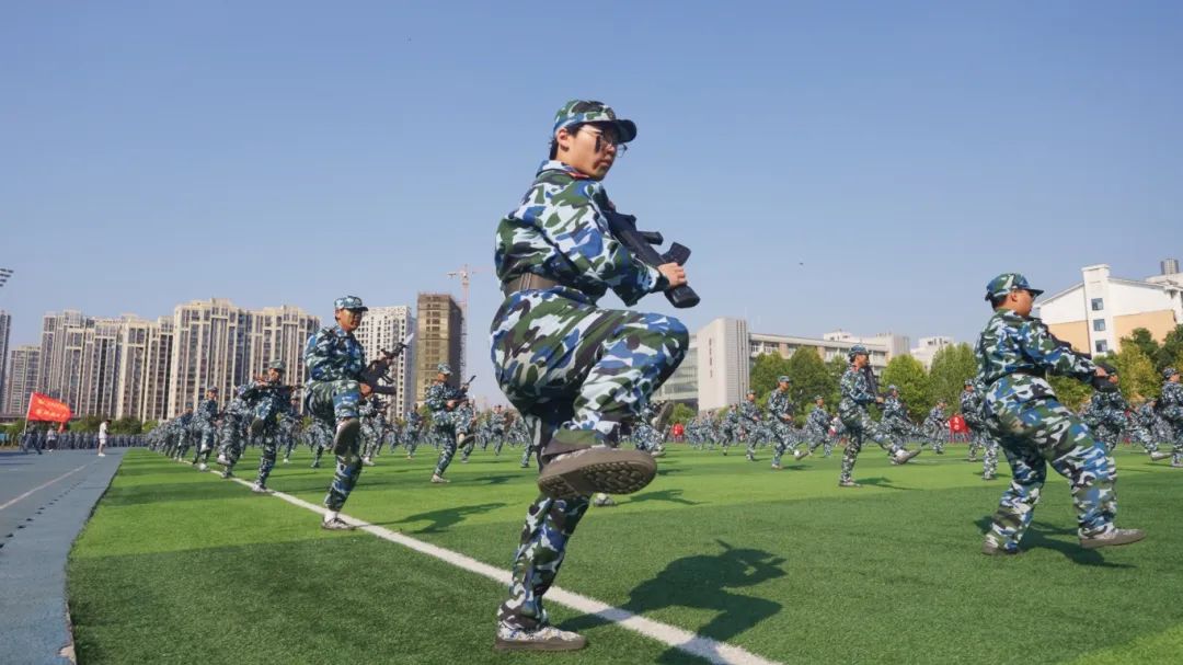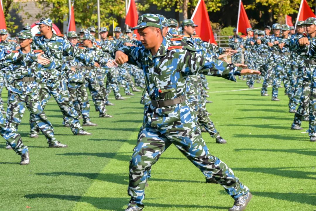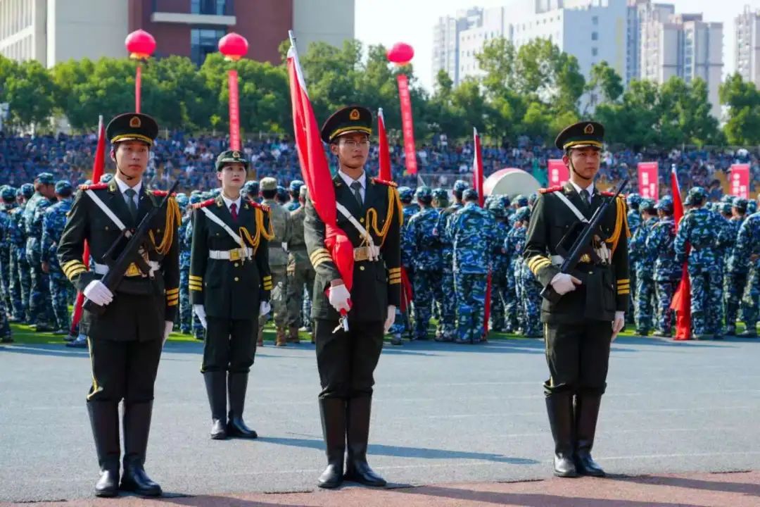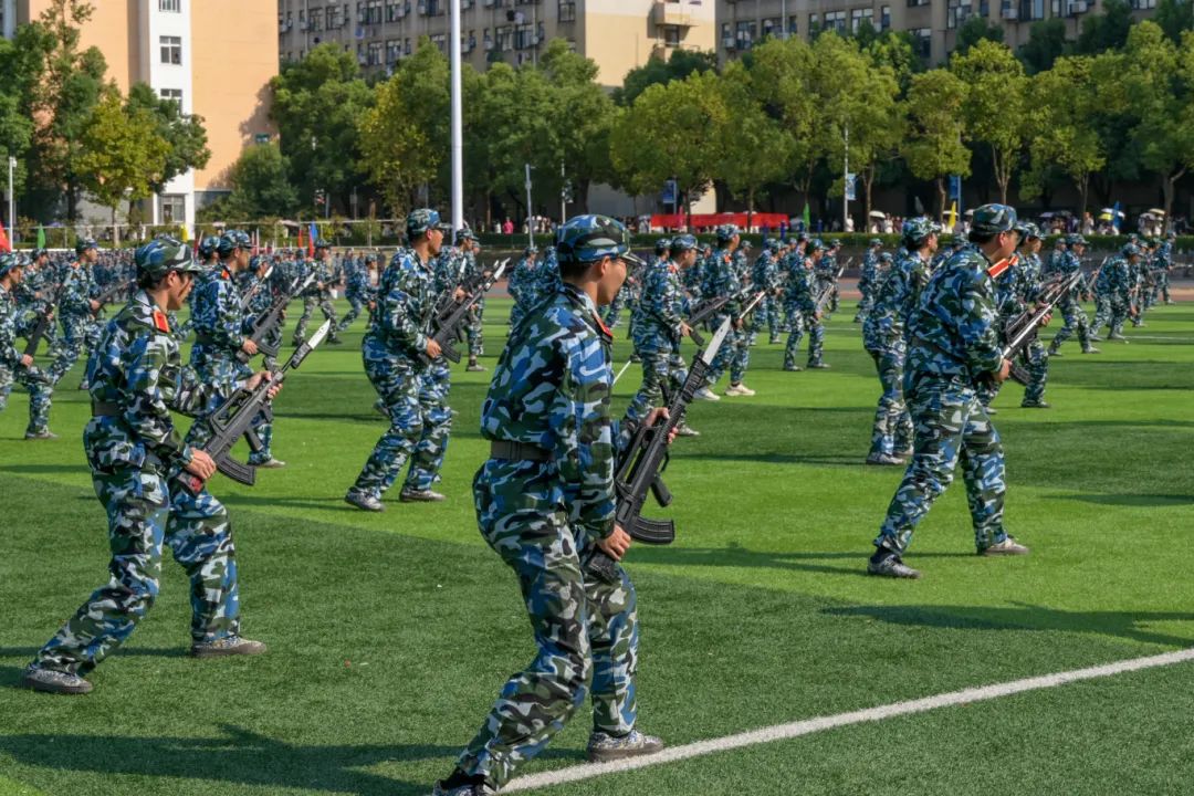 分列式进场,他们踏着整齐地步伐朝主席台走来,军容严整、意气风发。每一声呼号都响彻云霄,洋溢着青春的生机与活力。