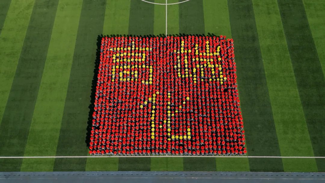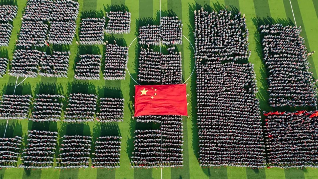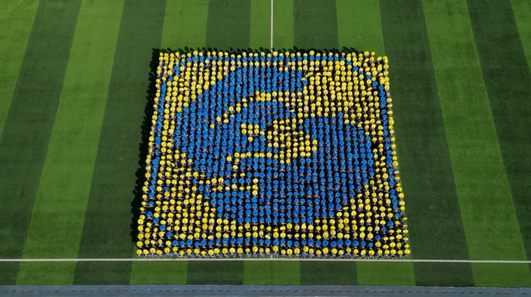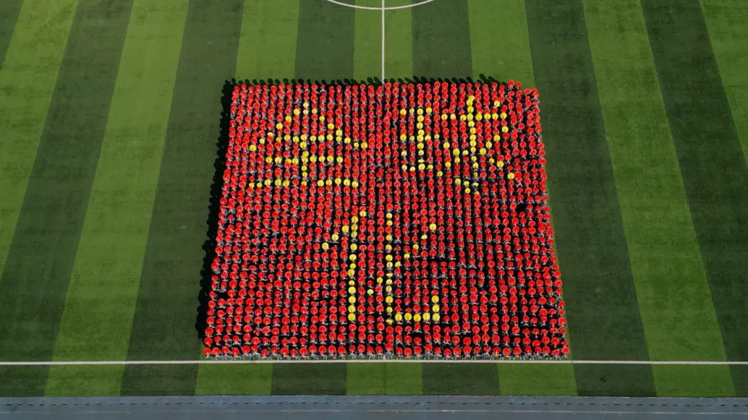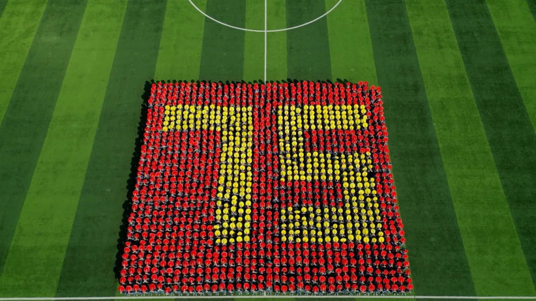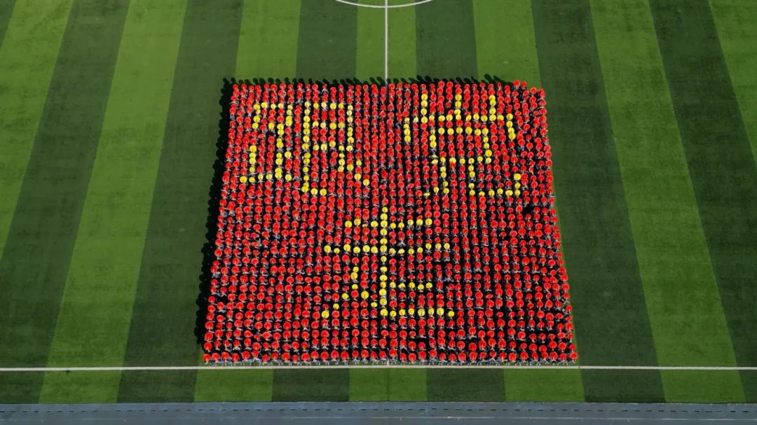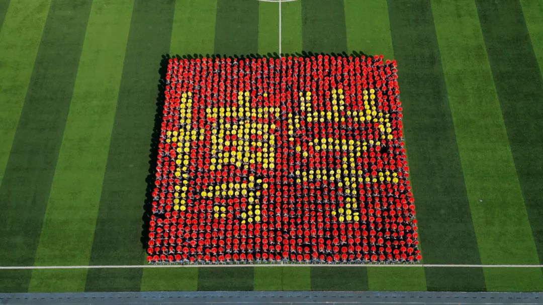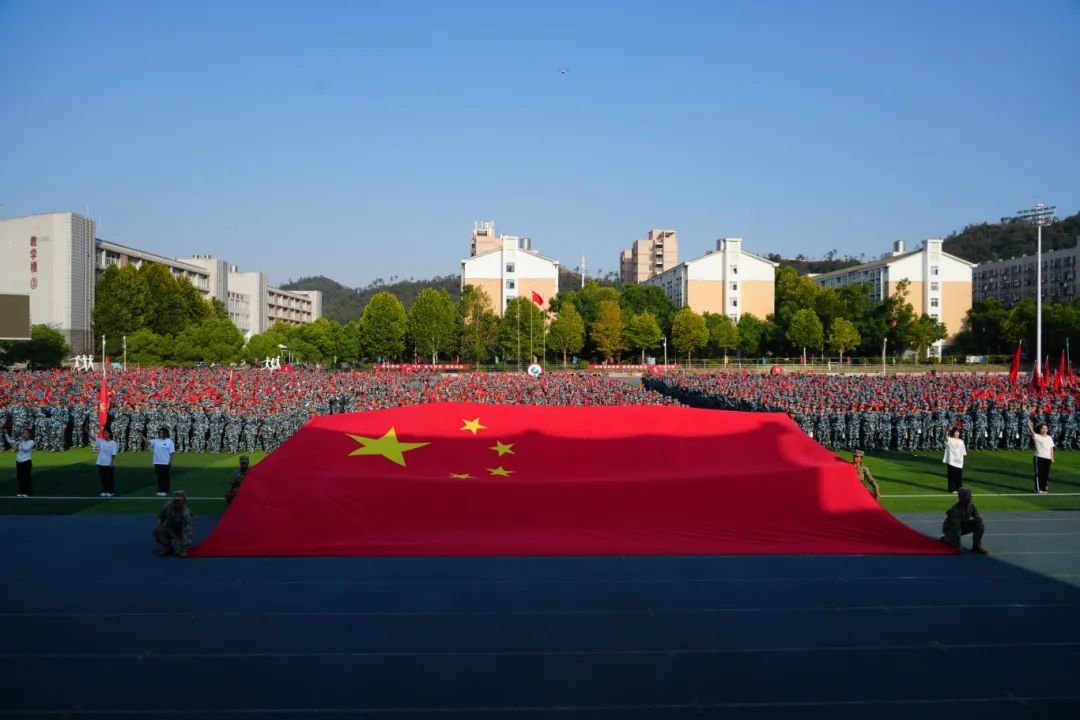 活动尾声,全场师生合唱《歌唱祖国》,托举巨幅国旗传递,庆祝新中国75周年华诞。在青春激昂的歌声中,武汉工程科技学院2024级新生开学典礼暨军训成果汇报大会落下帷幕。