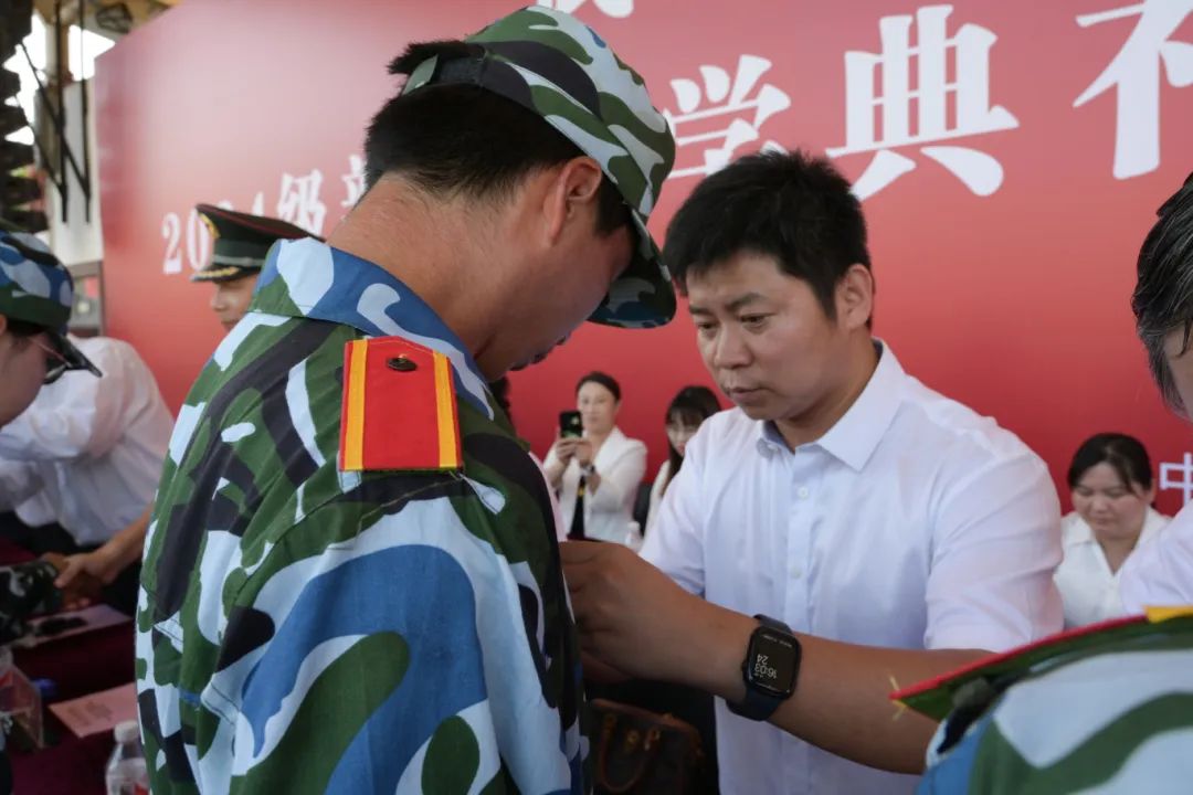 随后,举行新生“入学礼”仪式,主席台领导们为新生代表佩戴校徽。