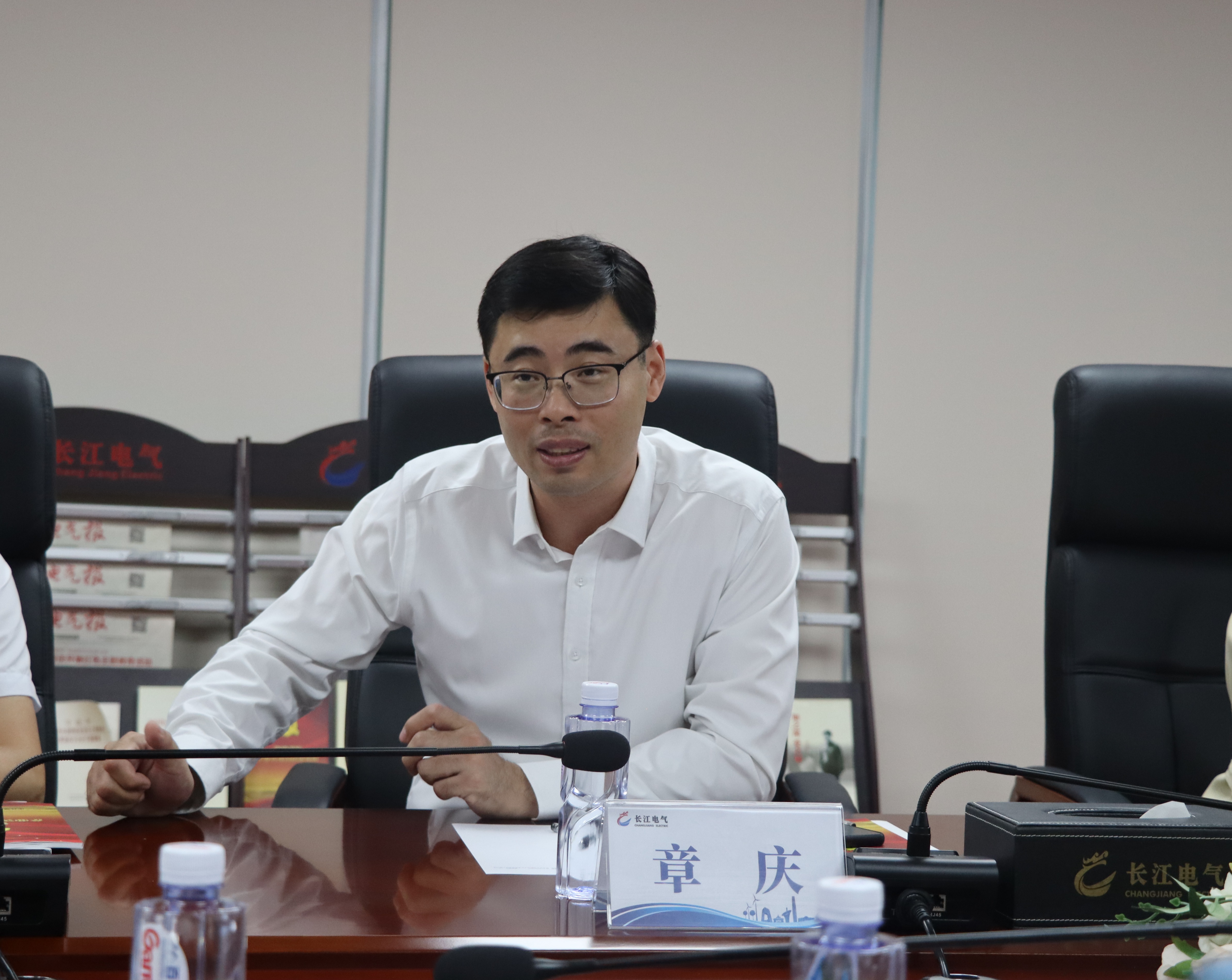 参观结束后,双方在长江电气会议室召开了校企合作交流会,会议由章庆主持。他指出,长江电气是一家民营企业,公司聚焦智能电网和智慧能源的规划设计、软件开发、设备智造、工程建设与运维服务等核心业务,致力于为客户提供清洁低碳、安全高效、节能环保的系列产品和服务。公司目前拥有员工2100余人,下属子公司22个和3个院所(商学院、研究院和创新中心),拥有国际先进国内领先的数字化智造中心,产能规模过百亿,主营业务及服务网络遍布全球40多个国家和地区。他强调,长江电气快速发展得益于企业的技术研发实力和科研创新。他希望,未来与更多的市内高校开展合作交流,共同培养企业需要的合格人才。
