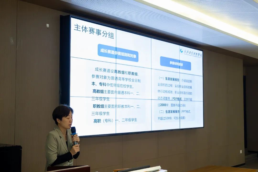 马克思主义学院教师张美华,详细解析校赛方案,阐明了本次大赛的报名流程、参赛材料要求、成长赛道和就业赛道评分标准、考查重点以及赛程安排等。