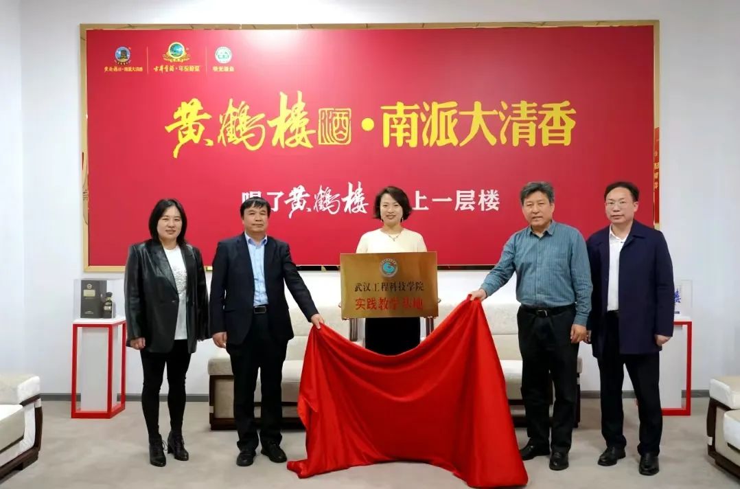 随后,杨伦、胡晶晶、刘美中、孙培彬、姚赟等双方领导共同为“武汉工程科技学院·黄鹤楼酒业公司·实践教学基地”揭牌。