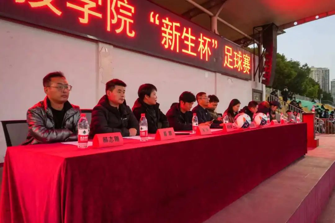 为弘扬体育运动精神,推动校园足球文化的发展,增强学生的身体素质,11月27日晚,由校体委主办、人文学院和新活力体育产业学院承办、校团委和艺术与传媒学院协办的2024年武汉工程科技学院“新生杯”足球赛决赛暨颁奖仪式在学校田径场顺利举行。学校党委副书记、校长助理唐军国出席活动,相关学院师生代表和运动员参加活动。活动由人文学院体育系社会体育指导与管理专业教师杨径主持。艺术与传媒学院广播电视系教师雷淇源担任比赛解说嘉宾。