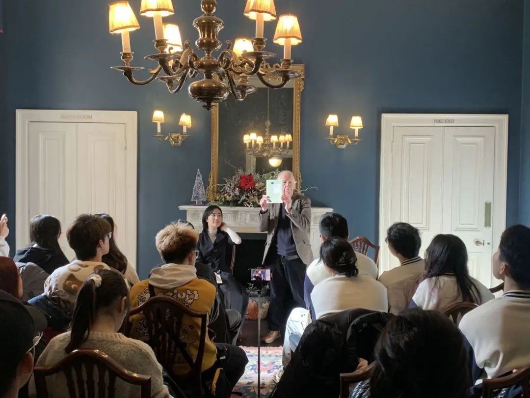 12月9日,同学们来到剑桥大学国王学院开启新一天的课程学习。英国历史学家、人类学家,剑桥大学国王学院终身院士,英国皇家历史学会院士,皇家人类学会院士,英国科学院欧洲科学院院士Alan教授为大家授课。他借用其著作《现代世界的起源》,与大家地探讨了关于人类学、历史学等领域的前沿研究成果与发展趋势。Alan教授最后寄语大家,努力传播中华文化,学习了解外国文化,成为一名跨文化交流者。Alan教授的讲座不仅为学生们打开了通往国际学术前沿的窗口,拓宽了学术视野,更引发了大家对未来学习与研究方向的深入思考。