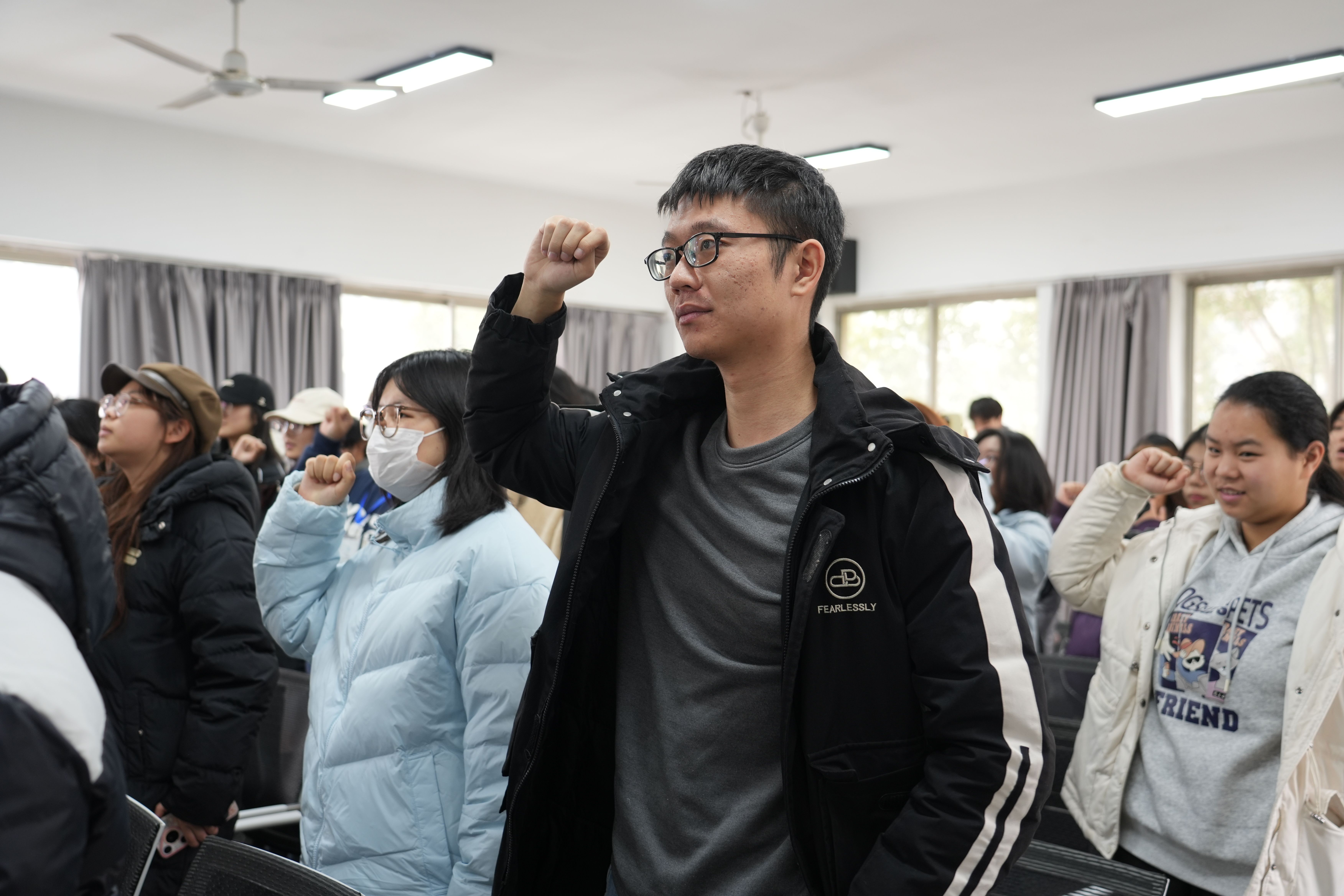 杨伦致辞。他首先对“空间交互直播”人才训练营的开班表示热烈祝贺。他指出,科技与社会进步正推动人才培养模式变革,空间交互直播将发挥关键作用,学校积极探索这一新模式,有利于为同学们提供更广阔的发展空间。他表示,学校将继续深化与湖北未来家园高科技农业公司的合作,实现资源共享、优势互补,助力学生实践锻炼和未来发展。他希望同学们严守营训纪律,践行誓词,以热情和信念投入学习实践,勇于挑战自我,创新实践,将知识转化为解决实际问题的能力,为未来职业发展奠定坚实基础。