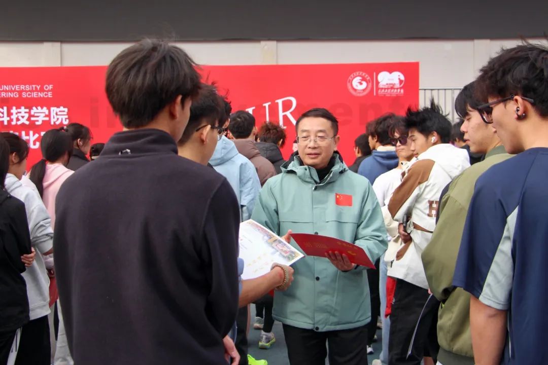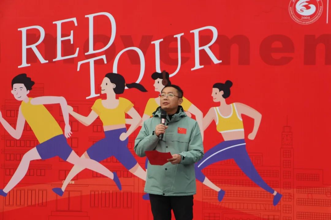 唐军国致辞。他首先代表学校对参加本次活动的师生表示热烈欢迎。他对参加比赛的同学们提出四点希望:一是传承历史,铭记初心,“一二·九”运动起源于一次伟大的抗日救国运动,希望同学们借此次活动的机会强健体魄,激发爱国热情;二是锻炼身体,增强体质,培养坚韧不拔的意志,挑战自我,超越极限,展现青春的激情;三是团结协作,共同进步,发扬团队协作精神,互相鼓励,在比赛中增进友谊,在合作中实现共赢;四是安全第一,文明参赛,严格遵守比赛规则,以健康、文明、和谐的方式,营造良好比赛氛围。最后,他预祝本次“一二·九”长跑活动取得圆满成功。