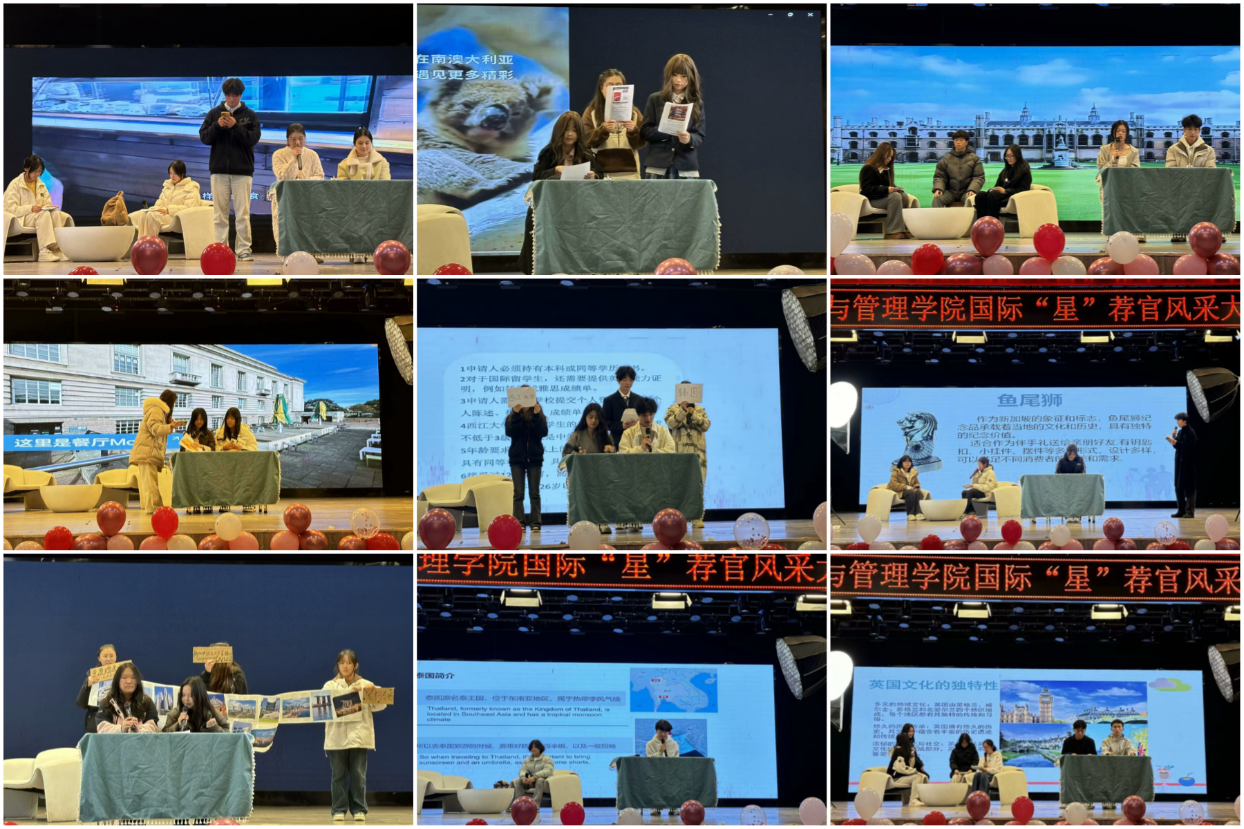 比赛正式开始,十九支参赛队伍依次上台展示。各组选手们结合各个国家的多元文化,以模拟直播形式,通过生动精彩的表演带领大家走进各大世界名校。观众们在一阵欢声笑语中,深入了解了不同风味、不同特色的文化。比赛为同学们提供了广阔的国际平台,让大家能够在多元文化的环境中茁壮成长。
