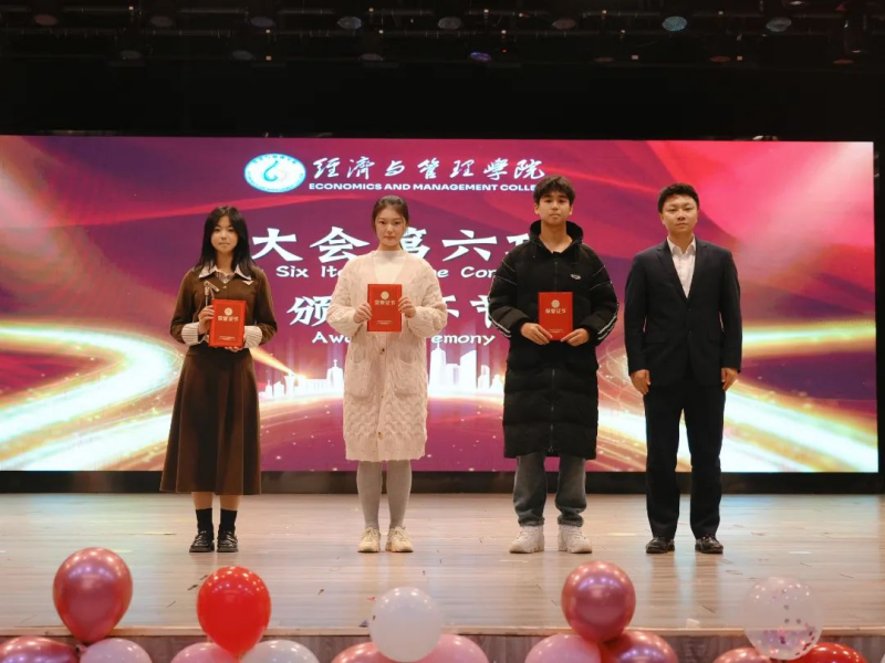 经过评审打分,获奖团队名单出炉。经济与管理学院团总支书记何博文分别为“成功人士”队、“超级飞侠”队、“管你对不”队颁发优秀创意奖、优秀台风奖、优秀展示奖。