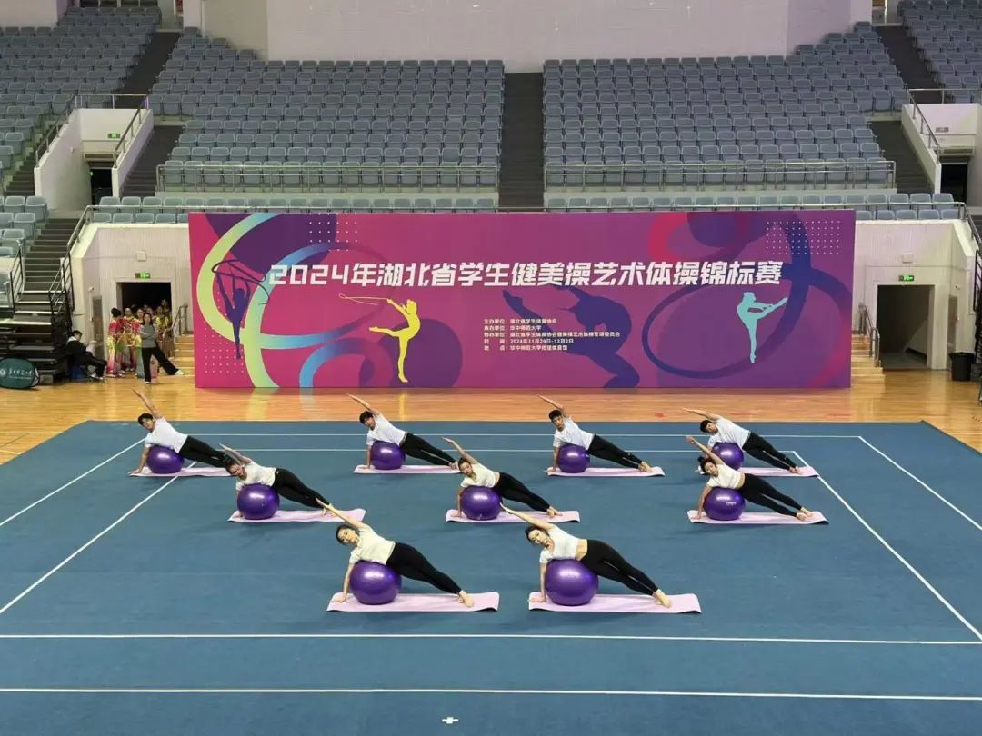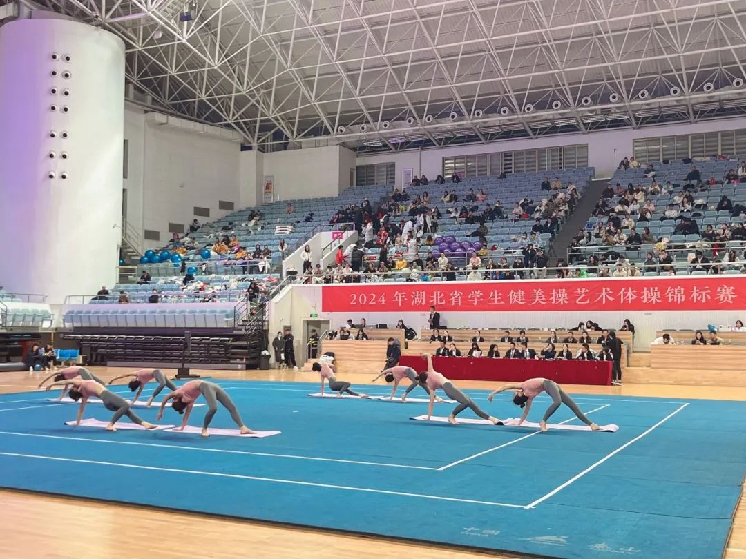 近日,2024年湖北省大学生健美操艺术体操锦标赛在华中师范大学佑铭体育馆成功举办。我校40名学生在高昆、张学芬,教练员宋英、王桂桂、徐娅妮、万丽芳等6位老师的带领下,参加了四个项目的角逐,获得大学生甲组健美操(规定)2018中国大学生健美操(初级)三等奖,(规定)2018中国大学生健美操(中级)三等奖;健身操舞(自选)瑜伽(辅具)一等奖,(自选)瑜伽(徒手)三等奖的好成绩。