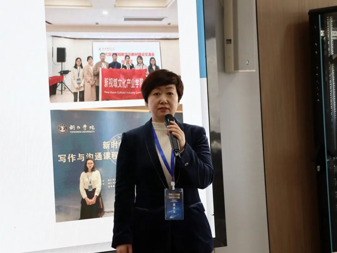 燕京理工学院人文教育学院副院长刘娜娜以《新视域下的文化盛景:人文学院培育时代精英》为题,系统展示了学院专业集群建设的成果与前瞻规划;哈尔滨广厦学院人文教育学院院长王莫楠深入剖析了产业学院育人模式的创新之道,提出“三位一体、四方联动、五力协同”的创新育人模式;华南农业大学珠江学院人文学院院长陈军介绍了该校2024年度专业建设概况,分享了与行业企业开展的产教融合项目以及今后工作设想。