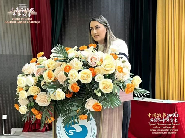 赵欢致辞。她表示,语言不仅是表达工具,也承载着各国的历史与文化。她指出,同学们在学习语言的同时,也是在不断拓宽国际视野、提升跨文化交流能力。她希望,同学们通过这次比赛,能成为“讲好中国故事、传播好中国声音”的优秀青年。