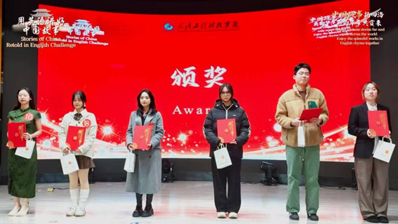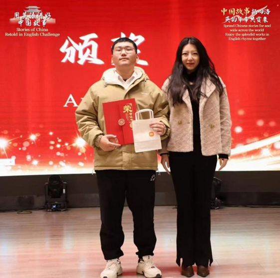 人文学院英语教研室主任孙川慧老师为二等奖获奖者颁奖。