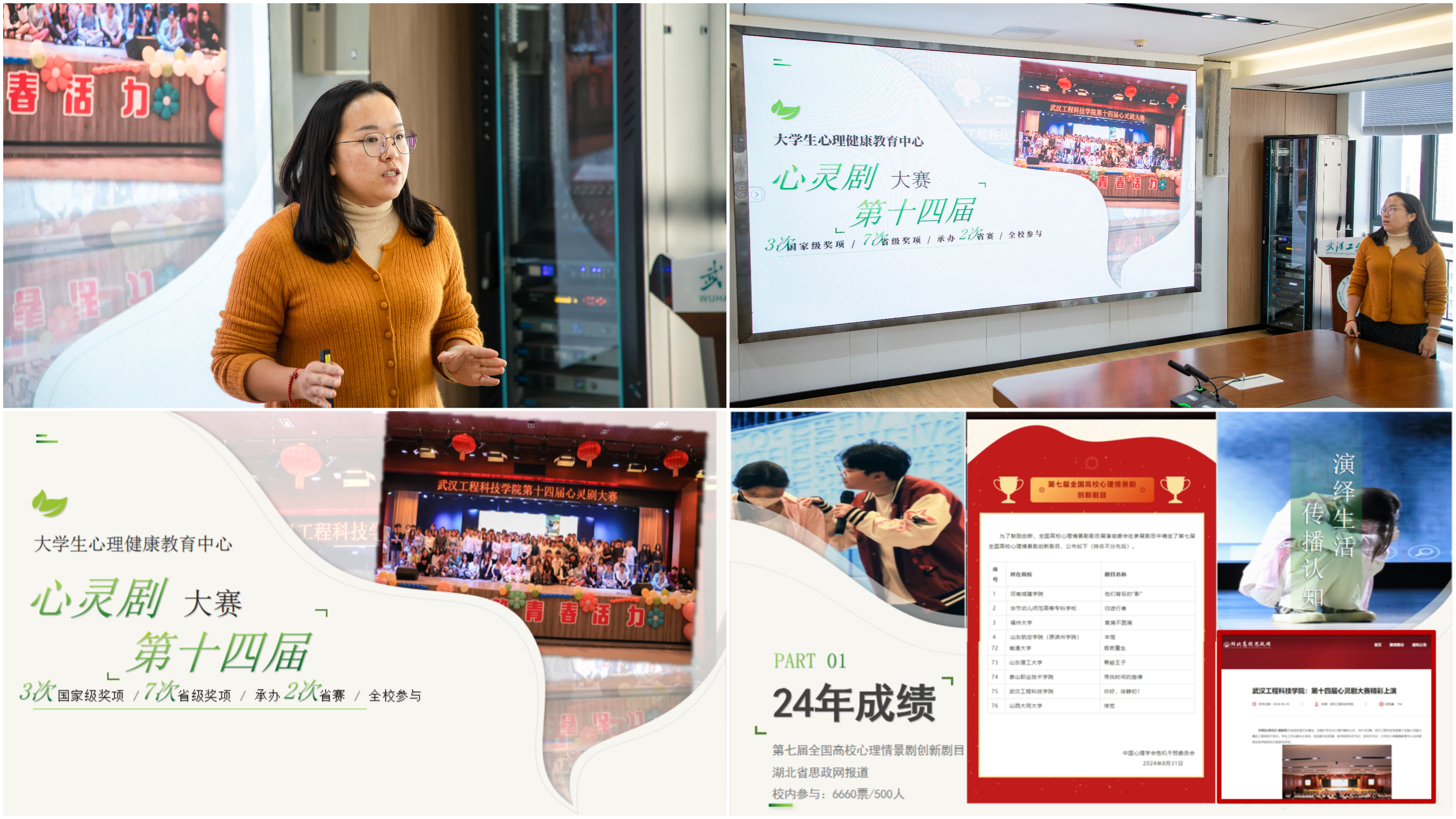 心理健康教育中心潘杨璐围绕第十四届校园心灵剧大赛活动项目进行汇报。该项目旨在进一步推动新时代大学生心理健康服务工作的深入发展,强化学校心理健康教育工作的力度。该项目在校内的参与人数已达到500人,其中部分优秀剧本荣获了“第七届全国高校心理情景剧创新剧目”的称号,并受到了湖北省思政网的报道关注。