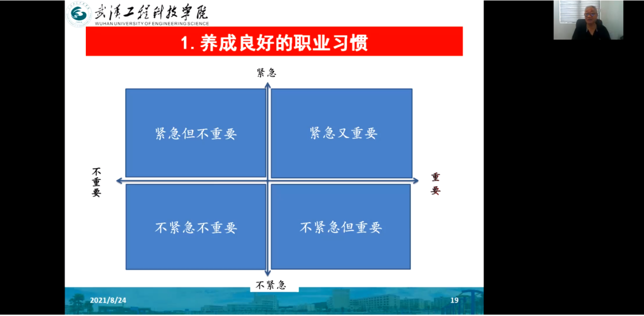 培训第一天,院长包德清首先做了《如何成为一个合格的教师》的讲座,他提出老师应具有观察力、亲和力、沟通力、说服力、想象力、预见力等工作技能,并强调老师应以为国家培养人才为己任,忠于国家,忠于学校,忠于教育事业。他强调,教师成功的第一要诀是对领导、对同事、对学生要做到诚实守信,教师是一个高尚的职业,但只有潜心修炼,方能成就大业。