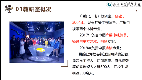 广播电视编导教研室主任冯威、播音与主持艺术教研室主任姚钧浩和表演教研室主任文晓乔从不同的角度,为大家讲解这三个专业,这三个专业是从广播电视编导教研室拆分出来的,所以各位主任对新老师进行了详细的介绍。