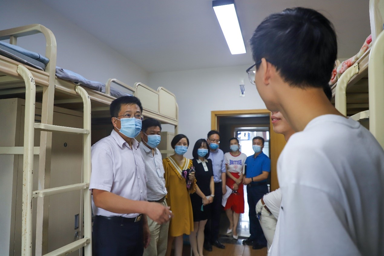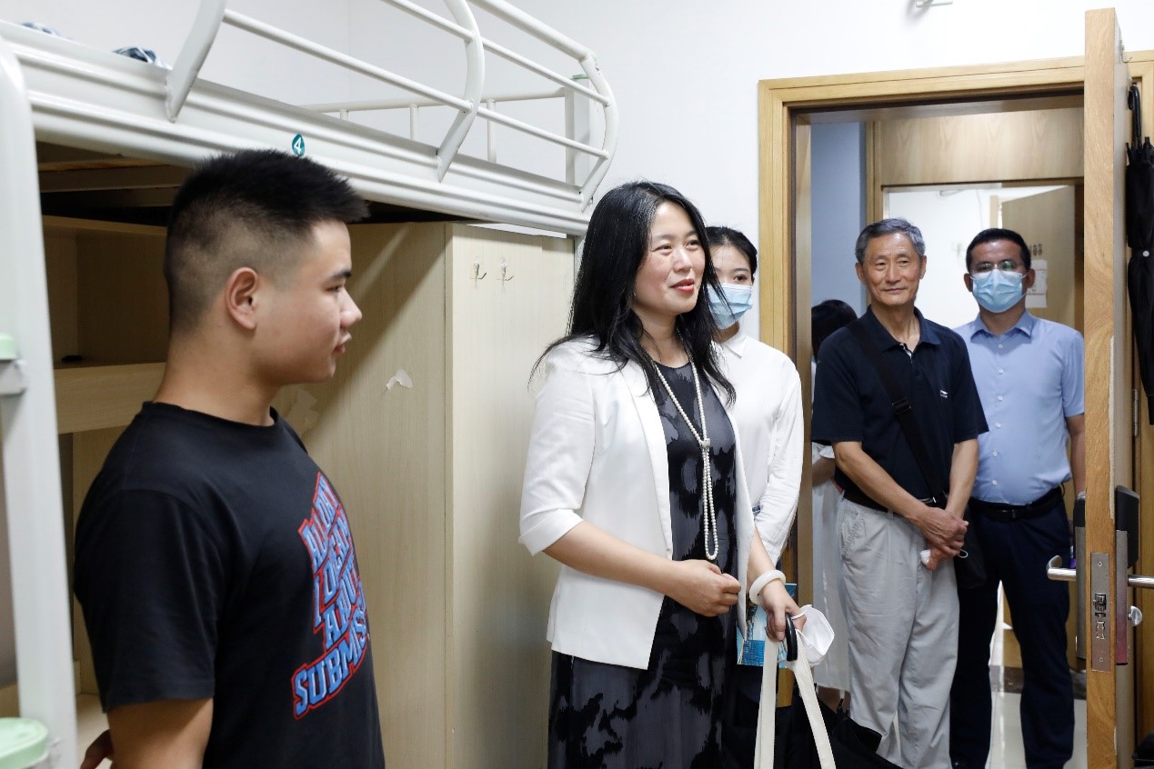 党委副书记、副校长郭霖在经济与管理学院党政班子和相关职能部门的陪同下深入9栋、12栋和16栋公寓看望新生,寄语新生尽快熟悉校园环境,适应大学生活。