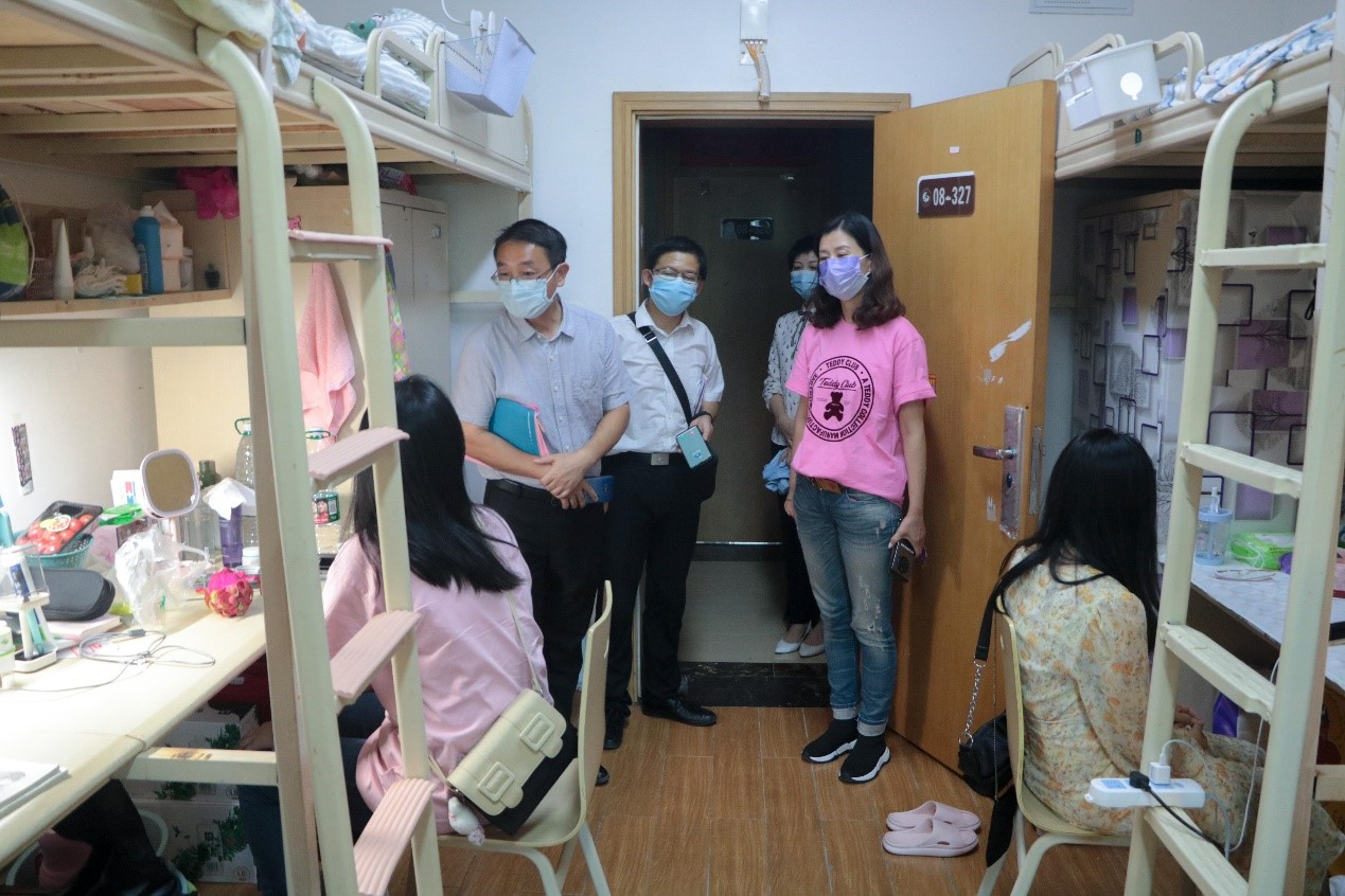 副校长廖璐莎在艺术与传媒学院党政班子和相关职能部门的陪同下深入8栋、12栋公寓看望新生,鼓励新生在武工院学有所成,全面发展。