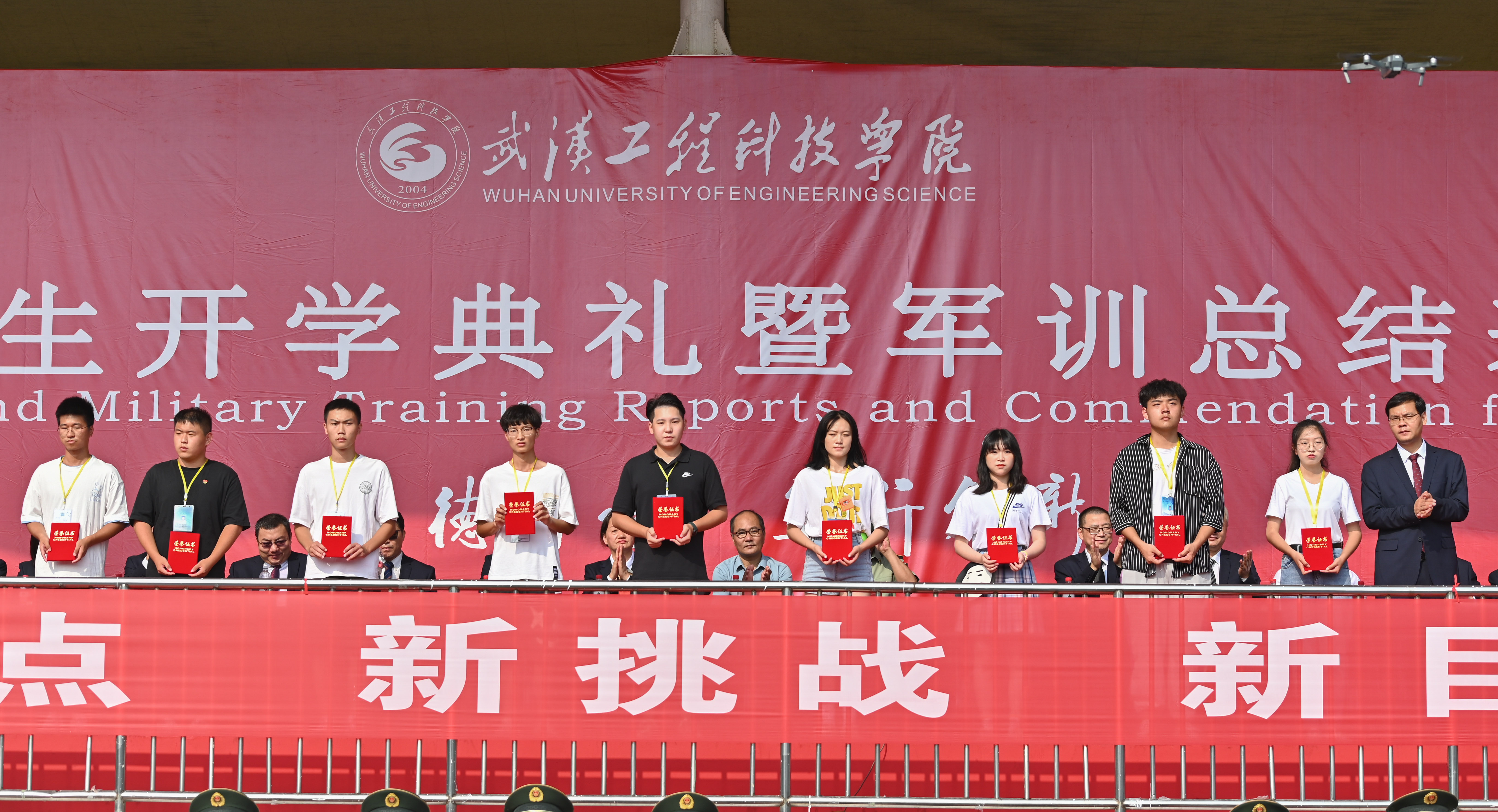 本网讯(通讯员 周思雨 郑琪云)9月27日上午,我校2021级新生开学典礼暨军训总结表彰大会在运动场举行。武汉船舶职业技术学院党委委员李友虎,武汉船舶职业技术学院士官学院院长申甲成,军训旅旅长雷荣桂,武汉工程科技学院执行董事陈香山,党委书记高芸,副校长杨伦,校长助理胡晶晶、郭万春,各学院院长、各职能处室负责人、全体辅导员、全体教官、教师代表、老生代表以及2021级全体新生参加了本次活动。副校长、军训旅政委郭霖担任本次活动的主持人。