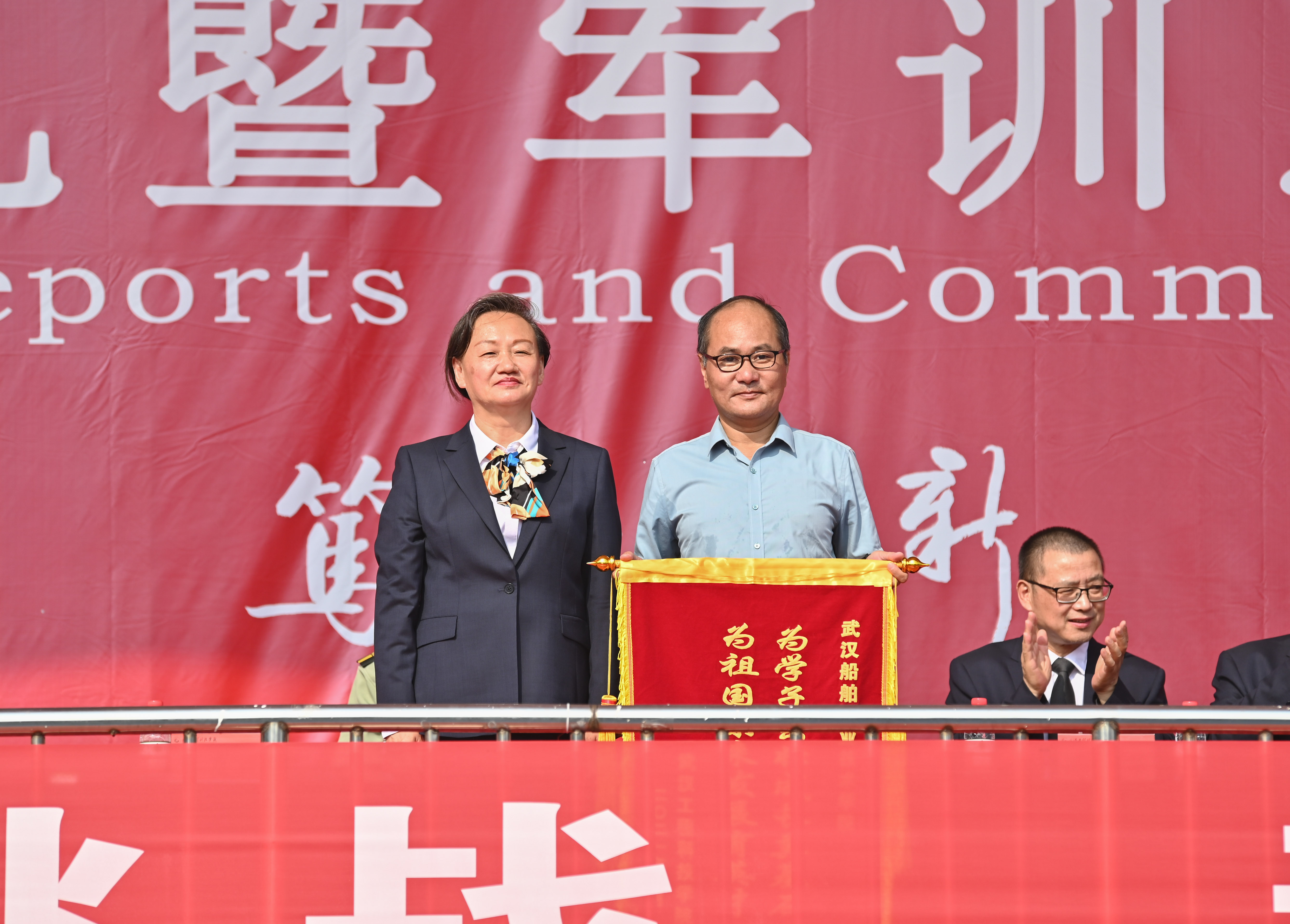 党委书记高芸向承训单位武汉船舶职业技术学院赠送锦旗,并表达衷心的感谢。