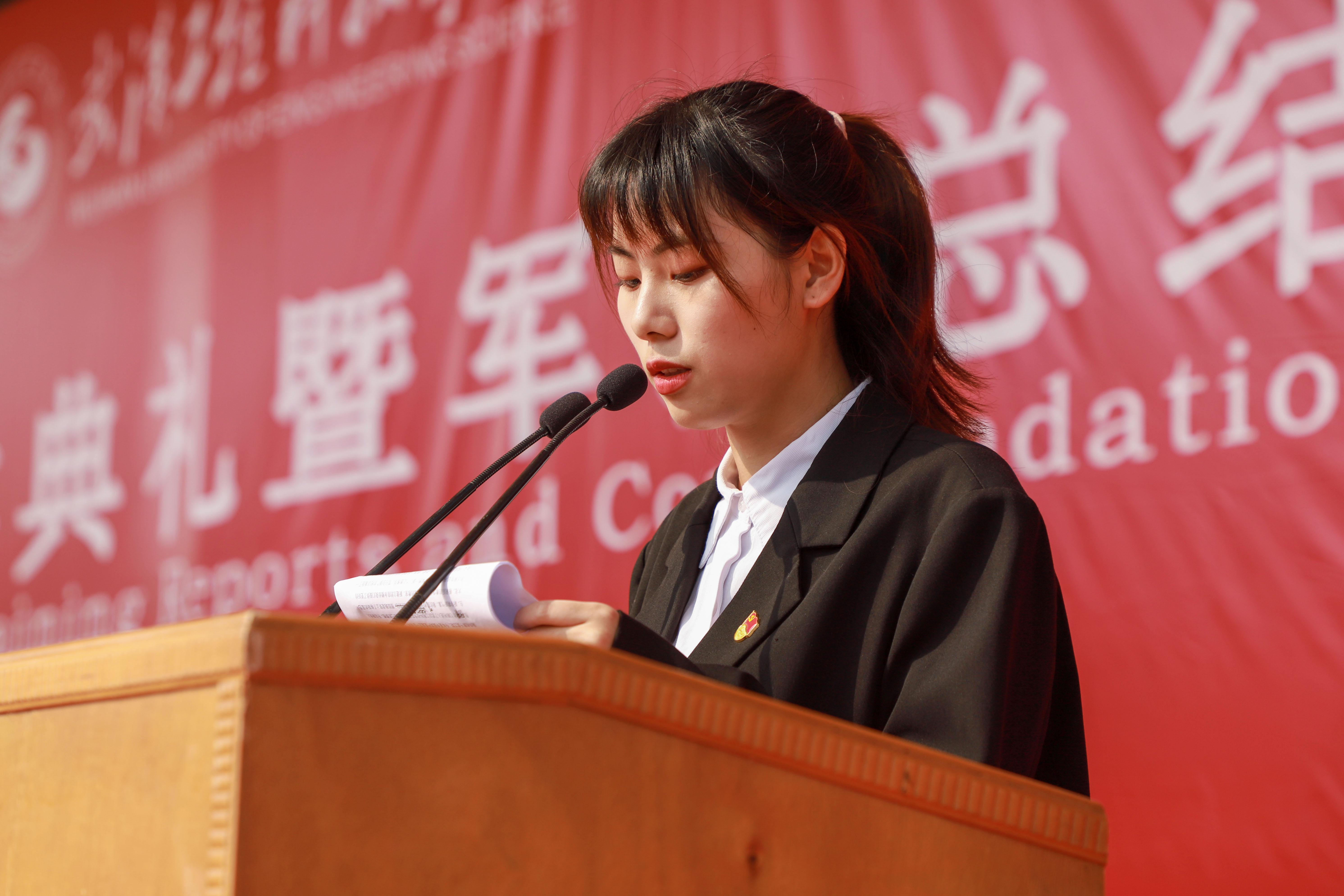 武汉船舶职业技术学院党委委员李友虎讲话。他向出席活动的领导、教师致以崇高的敬意,并向完成军训任务的同学表示祝贺。他表示,“军训是一个成长的阶梯,也是人生难忘的历程,更是一个崭新的课堂。在这里,同学们学会了用意志去战斗,用修养规范自己。军训虽苦,但只有苦其心志,才能增益其所不能。”他肯定了武工院学子在军训中的刻苦努力,并希望同学们在今后的人生道路上不断超越自我,以军训为起点,迈向更加辉煌的明天,为实现伟大复兴的中国梦贡献自己的青春和力量。