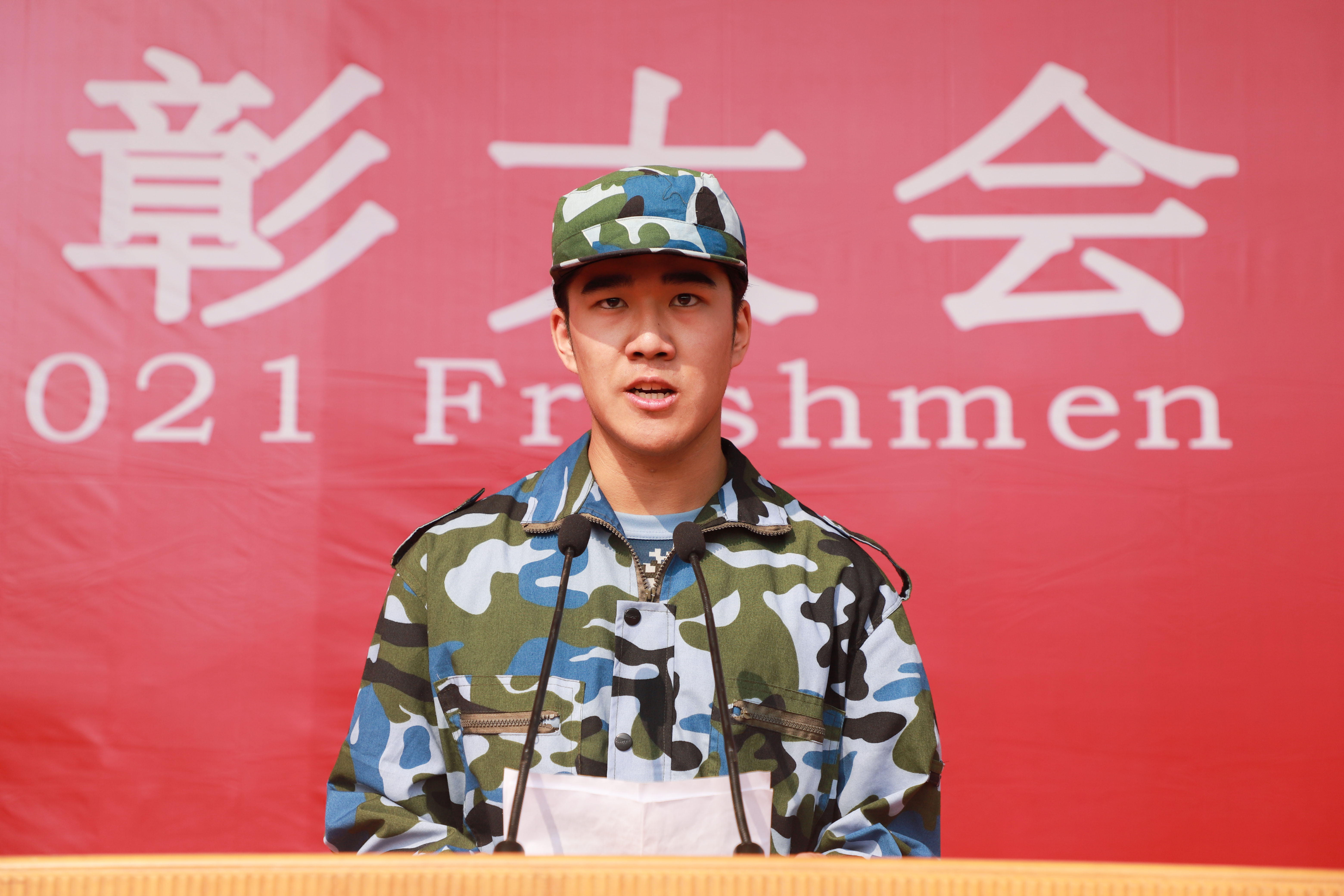校长助理郭万春宣读了《2021年军训旅表彰决定》,67名同学获得“优秀学员”荣誉称号,29名同学获得“优秀学长”荣誉称号,9名同志获得“优秀教官”荣誉称号,5名同志“优秀指导员”荣誉称号,10个单位获得“先进连队”荣誉称号。他希望,广大师生能向受表彰的集体和个人学习,以更加热情饱满的精神风貌投入到大学生活中去,不负青春、不负韶华。