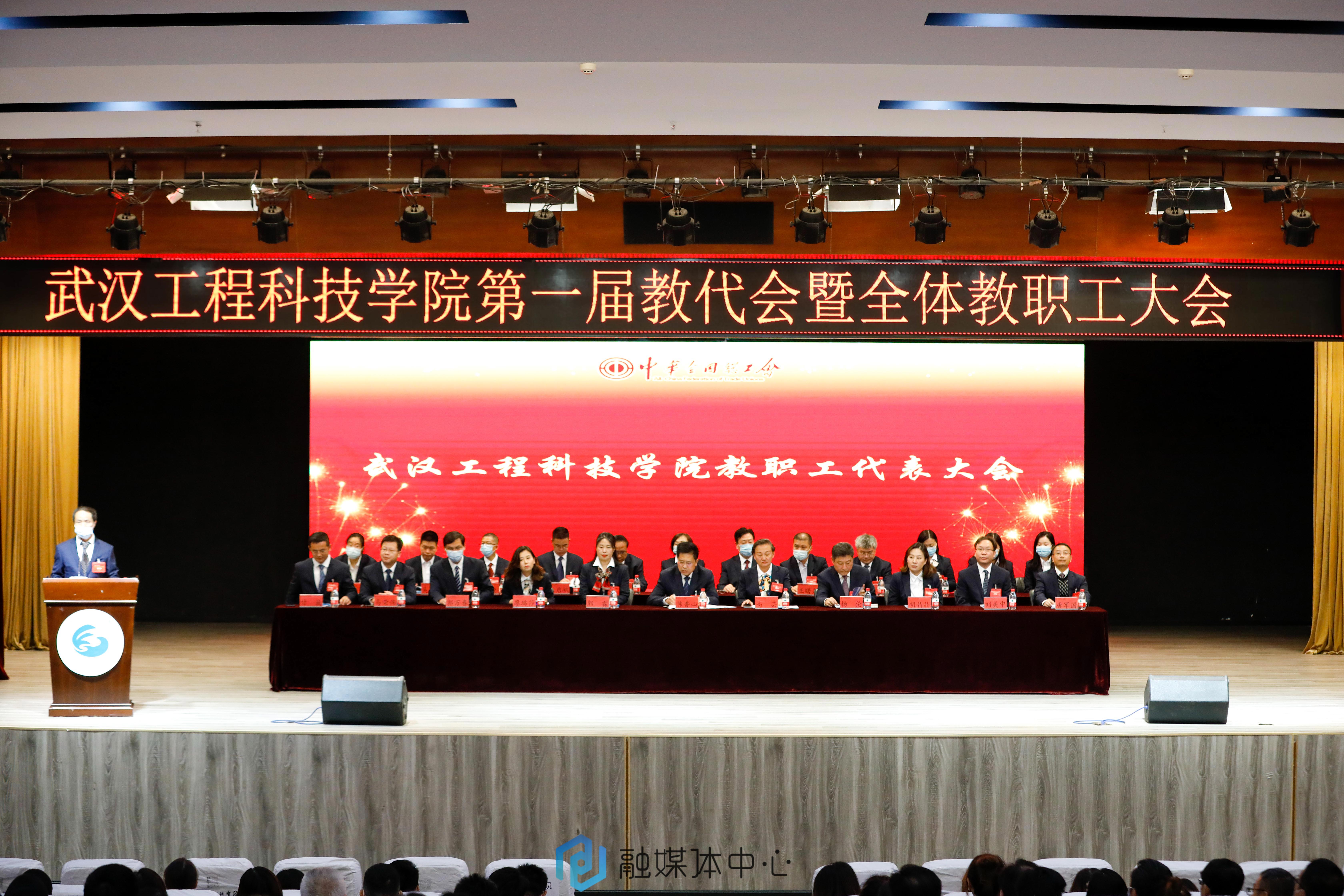 本网讯(大学生记者陈含宇 摄影王禹焜 王辰羽格)10月13日下午,武汉工程科技学院第一届教代会暨全体教职工大会在教三楼报告厅隆重召开。学校执行董事陈香山,党委书记高芸,党委副书记、副校长郭霖,副校长杨伦,校长助理胡晶晶、郭万春等校领导出席会议,全体教职工参加会议。会议由副校长、纪委书记、工会主席廖璐莎主持。