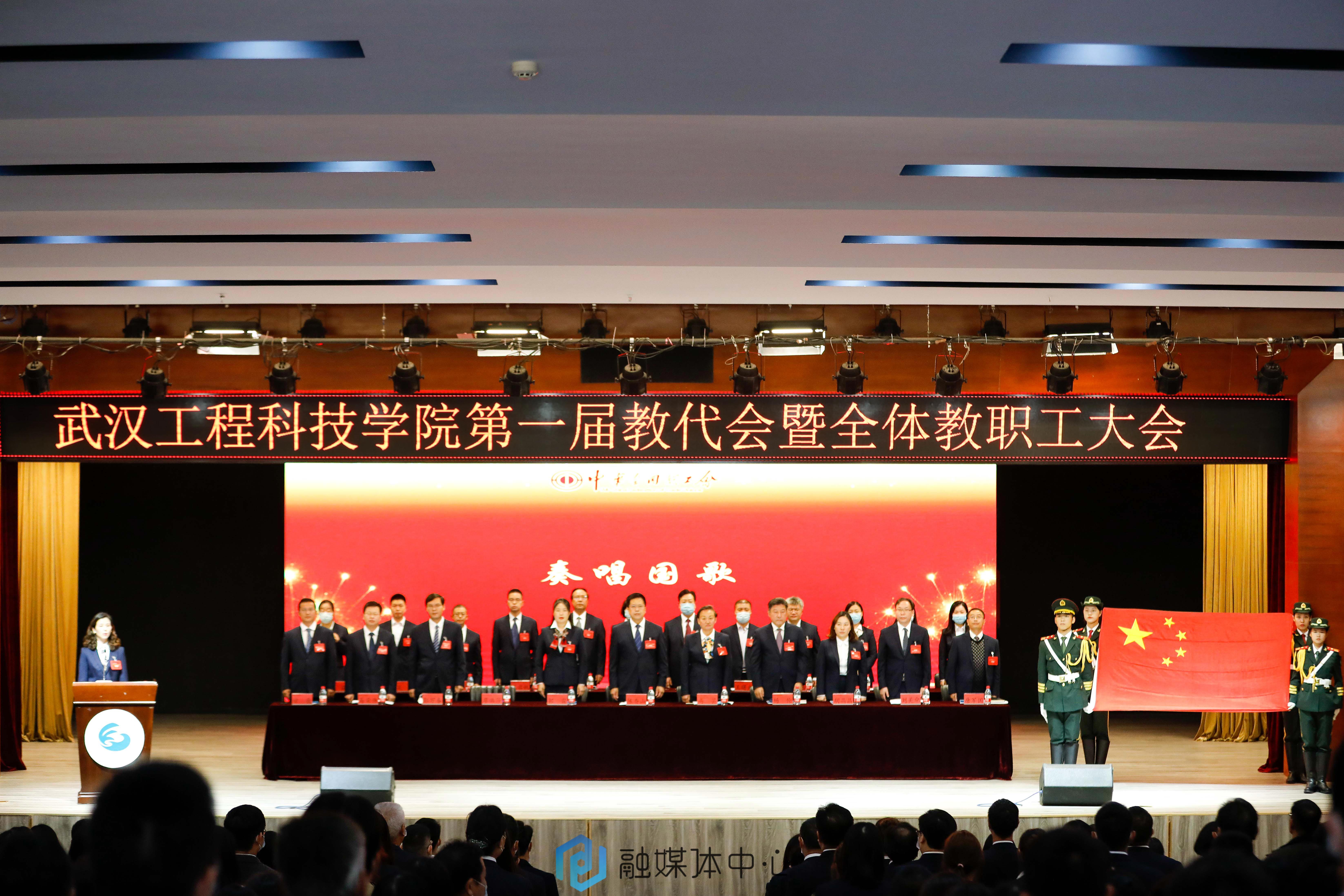会议伊始,廖璐莎宣布第一届教职工代表大会开幕,全体起立奏唱国歌。
