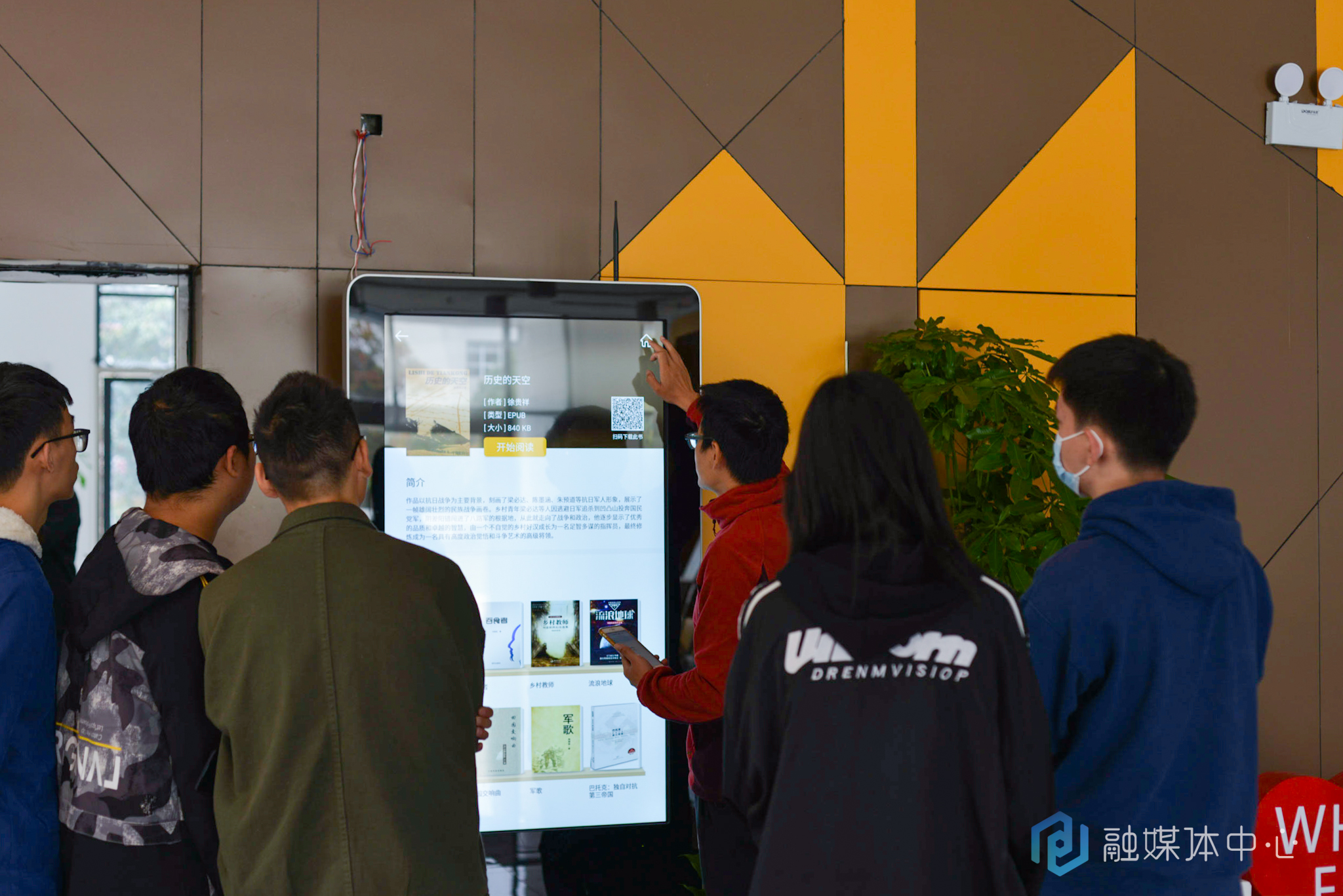 现场师生对阅读屏海量的藏书和便捷的阅读体验,表现出了极大的兴趣,纷纷上前试用。数字阅读屏内含10万册数字图书、3万集听书、千余册期刊杂志,为读者提供海量的数字资源。在大屏的显示界面,每一本书都配有对应的二维码,手机扫一扫便可带走整本书,随时随地移动阅读。这样一座“云端数字图书馆”搬进校园里,为同学们的校园文化生活增添了更多互动性、体验感。