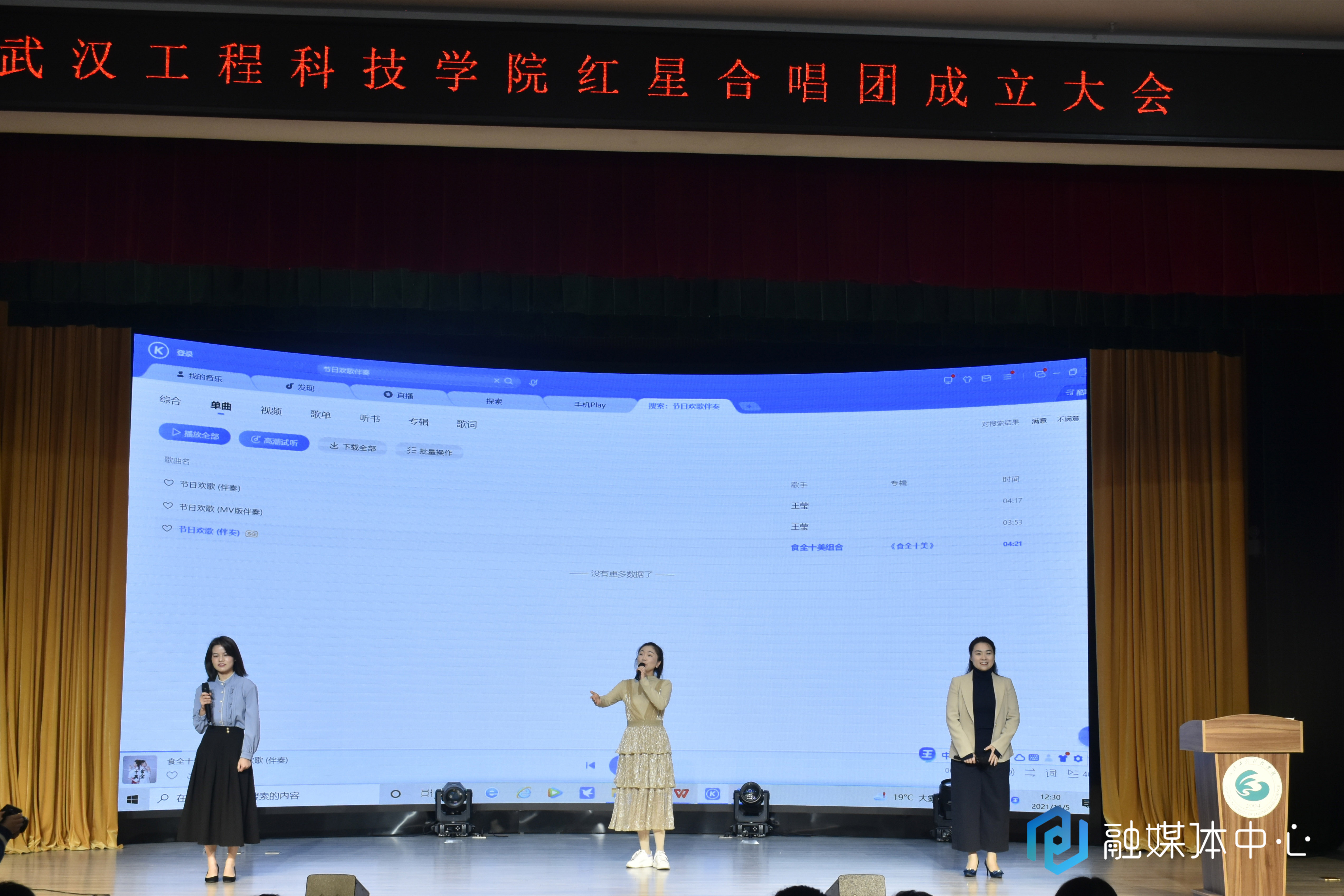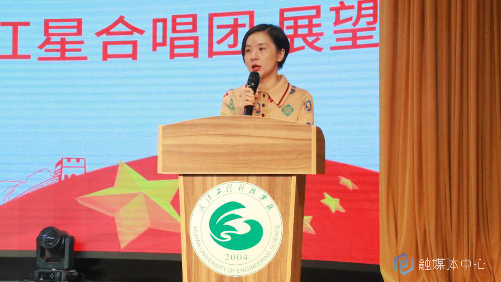 学生工作处副处长、校团委书记陈晶介绍武汉工程科技学院红星合唱团的工作展望。她介绍道,红星合唱团以“一颗红星,展望未来,弘扬合唱艺术,普及音乐知识,丰富校园文化,提高武工院学子的艺术修养和综合素质”为宗旨,由各学院120名非音乐专业的学生组成,包括女高、女中、男中、男低四个声部的混声合唱团。红星合唱团将成为思政教育的有效载体,团结和凝聚校内热爱歌唱艺术的学生,展现武工院学子昂扬向上、唱响新时代的精神风貌,为校园文化建设作出贡献。