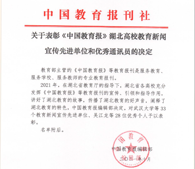 武汉工程科技学院荣获“高校教育新闻宣传先进单位”称号
