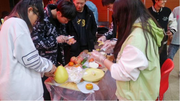 心理健康教育中心刘洁老师对本次活动做总结:“活动过程中我看到了大家热爱祖国、充满理想,看到每一个人都在闪闪发光。这些水果在平常看起来并没有那么引人注目,而将它们进行切割、拼装后,就变得美了起来。我们要有一双发现美的眼睛,去探索事物的美,探索心灵上的美。生活里有些学生会对自己产生怀疑和面临种种困惑,作为一名当代大学生,就应该像今天参加活动时表现的这样,在珍惜食材的同时去创造美好,有着热情与激情,在平凡的生活里过得不平凡,幸福美好的度过大学生活和人生旅途。”