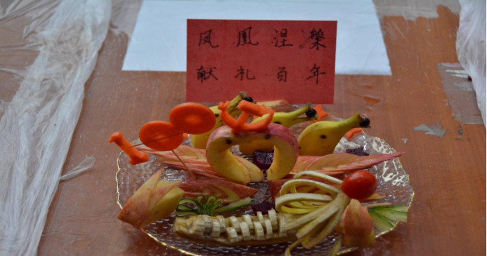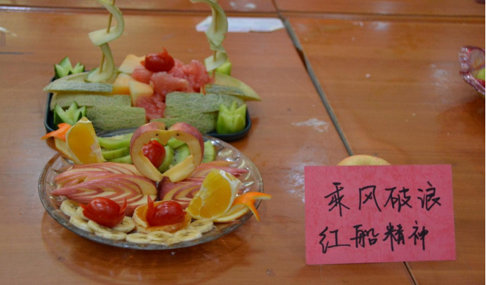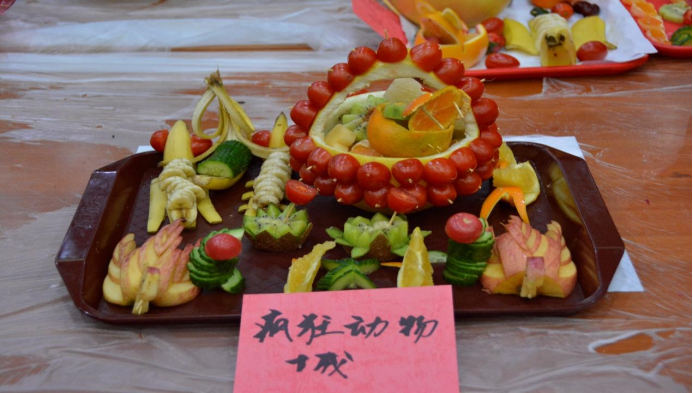主持人介绍了比赛规则后,王书记宣布比赛开始。所有参赛队伍迅速进入状态,配合默契,队员们聚精会神的拿起小刀雕刻起了水果,宛如一位位艺术家在雕刻着自己的作品。