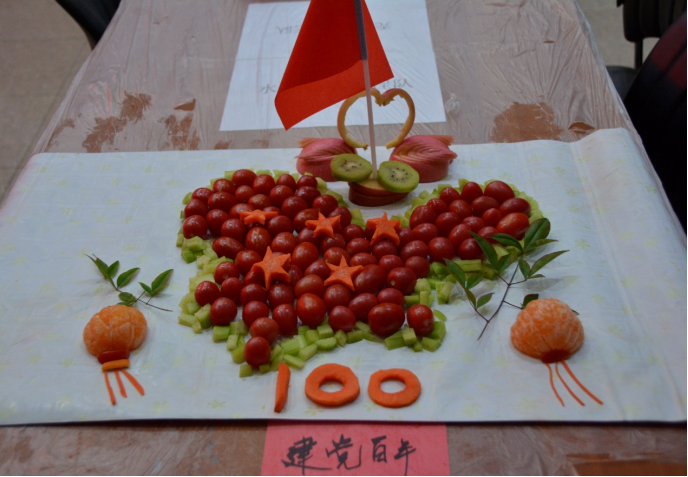简介:今年是建党一百周年,选择使用圣女果的红做为大陆板块,用小黄瓜给祖国做外围的装饰,寓意祖国生机勃勃,繁荣昌盛,用天鹅的志存高远与不屈不饶的精神表达对祖国的热爱,临近过年,用灯笼来祝大家新年快乐,健健康康。