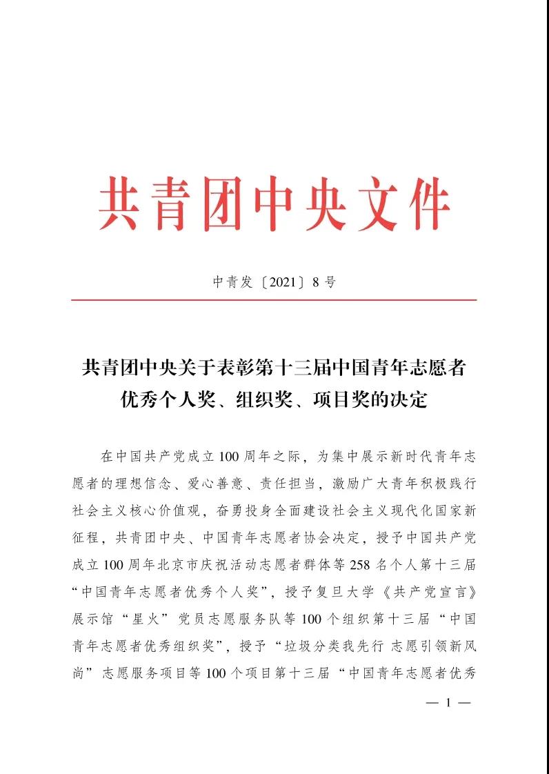 据悉,中国青年志愿者优秀个人奖、组织奖、项目奖由共青团中央、中国青年志愿者协会设立,自1996年以来已开展十三届评选表彰活动。本届表彰严格落实参评资格、条件和程序,注重面向基层和一线选树先进典型,注重对重大事件、重点领域中表现突出的个人、组织和项目的激励,展示新时代青年志愿者的理想信念、爱心善意、责任担当,引导广大团员青年在新时代新征程上奋勇建功立业。