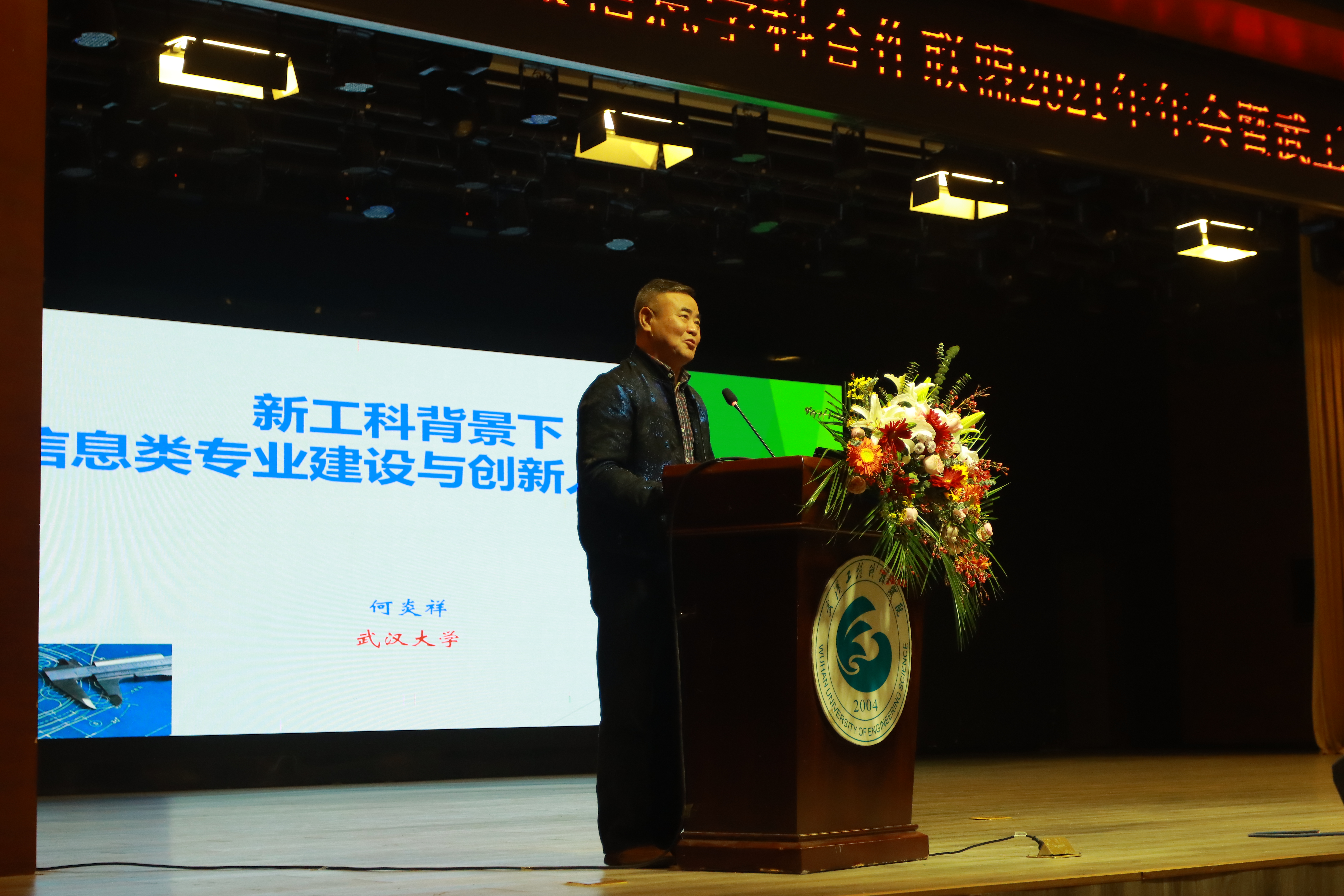 何炎祥教授做题为“新工科背景下的信息类专业建设与创新人才培养”的主题报告,他从三个方面对该主题进行阐述,第一是新工科建设的背景——云大物移智成为主流趋势;第二是新工科的特点——从学科专业的角度看新工科;第三是新工科专业建设和知识体系--存量变新和增量补充;第四是新工科人才培养。最后何教授引用爱因斯坦的名言:成功等于艰苦劳动加上正确方法和少说空话来做总结发言,勉励学子们勇于奋进。