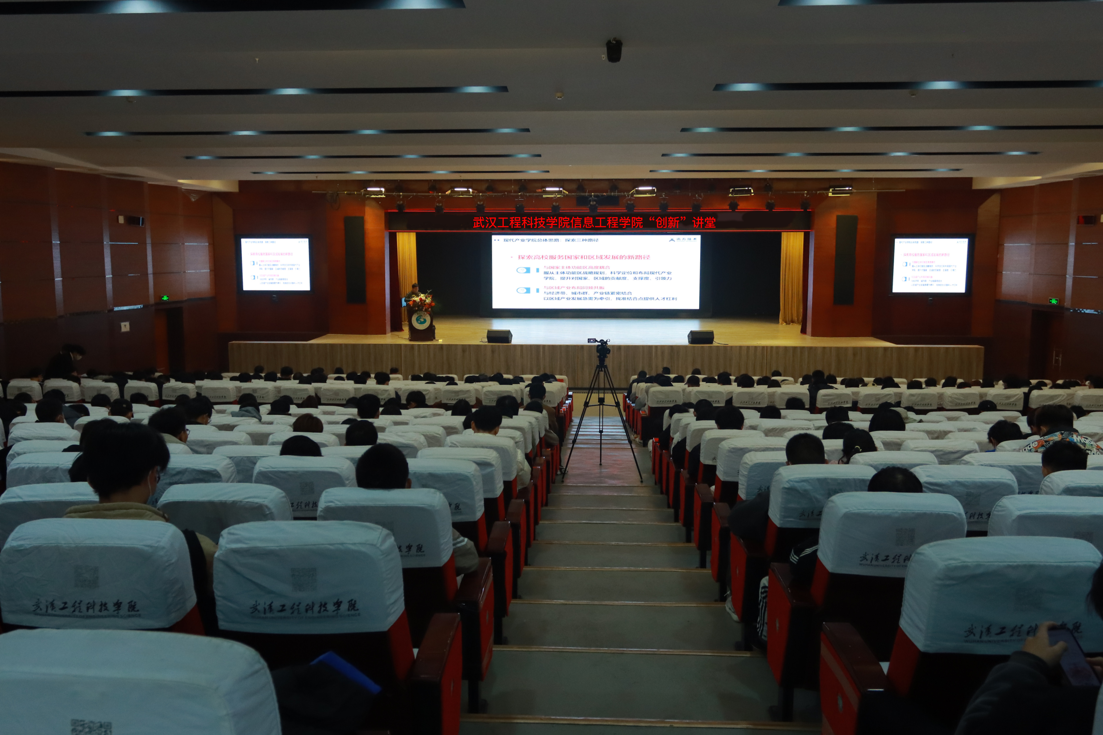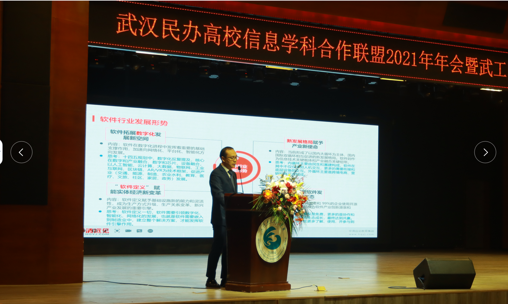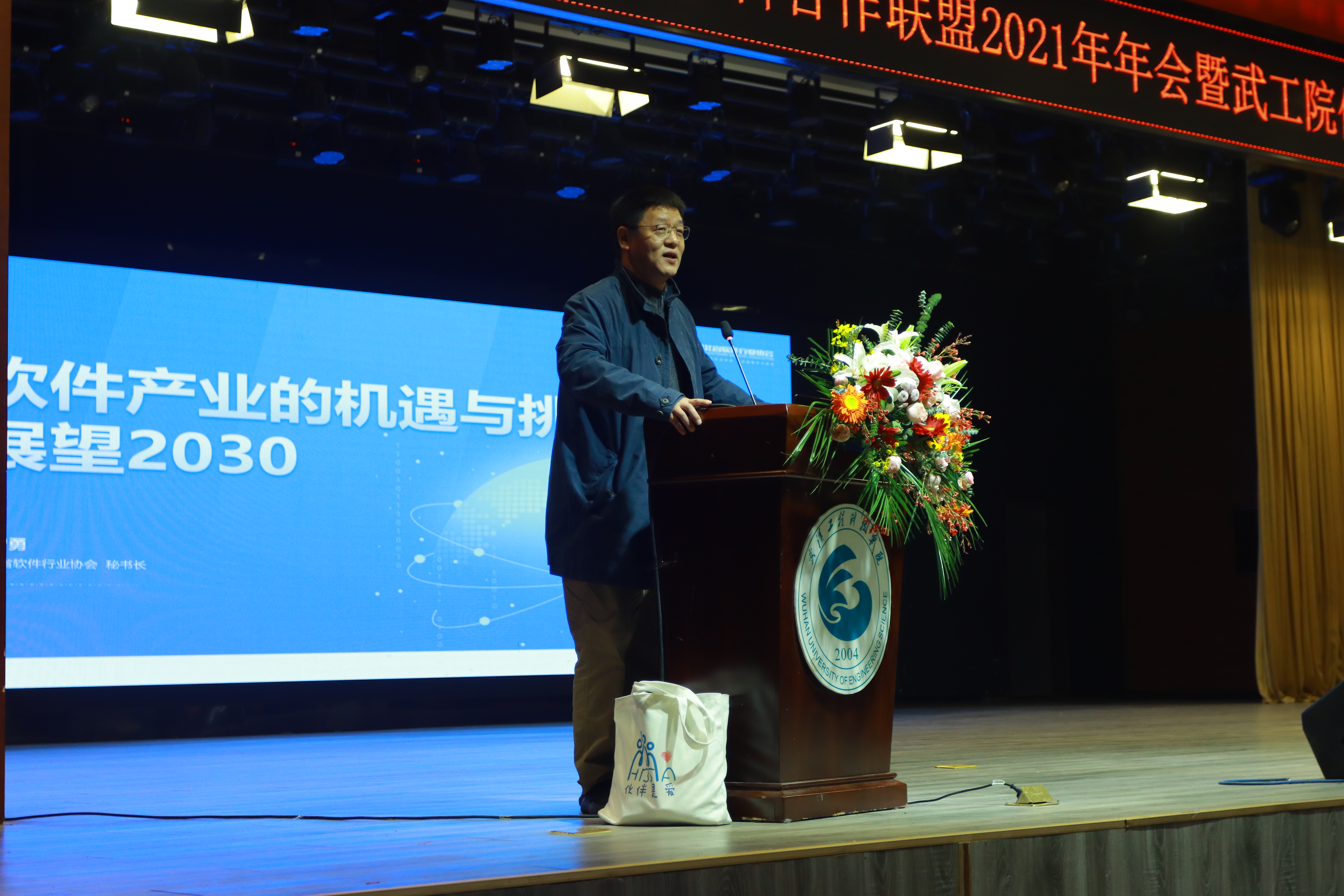 本网讯(通讯员 冯慧敏)为更好地培养具有武工院特色的新型工科人才,在湖北软件行业协会和武汉民办高校信息学科合作联盟的指导下,2021年12月11日,武汉民办高校信息学科合作联盟2021年年会暨武工院信息工程学院“创新”论坛在我校三教报告厅隆重举行。