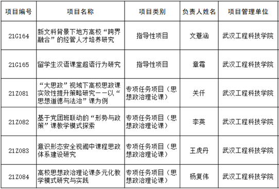 武汉工程科技学院6项目喜获2021年度省教育厅哲学社会科学研究项目立项