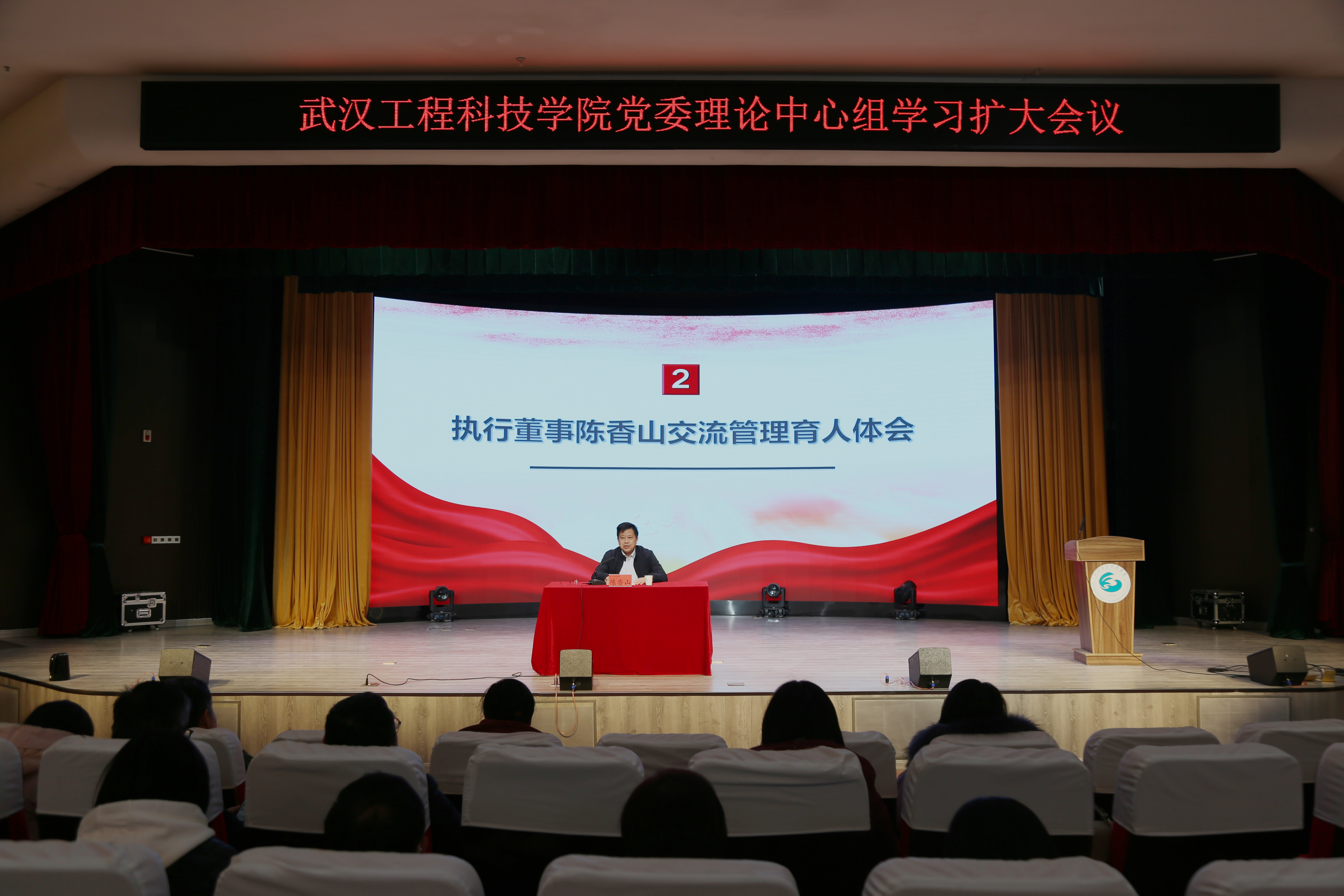 本网讯(通讯员 彭雪 摄影 刘杨宇倩)12月24日上午,武汉工程科技学院在图书馆报告厅召开党委理论中心组学习扩大会议。学校党委理论中心组成员、全体中层干部、各学院学工科长和辅导员参加了此次会议。会议由学校党委书记高芸主持。