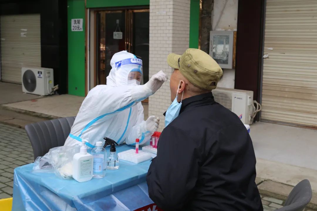 “请大家提前准备好微信健康码,十人一组,有序排队。”现场所有参检人员严格遵守防疫要求,佩戴好口罩,按照要求提前准备好健康码,依次前往信息确认区,最后在采样区进行咽拭子采样后有序离开。