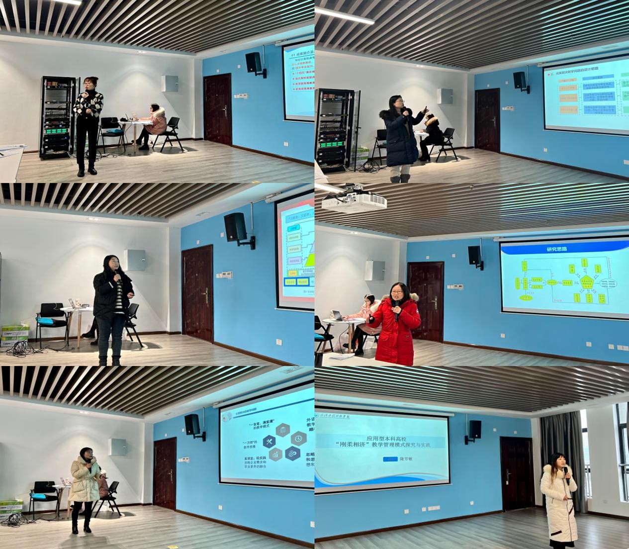 申报教学成果奖的11位教师逐一进行了汇报,他们分别从成果简介、解决的主要教学问题、解决教学问题的方法、成果的创新点、推广应用效果、依托课题、出版专著、教材及发表论文等方面进行了简明扼要的陈述。