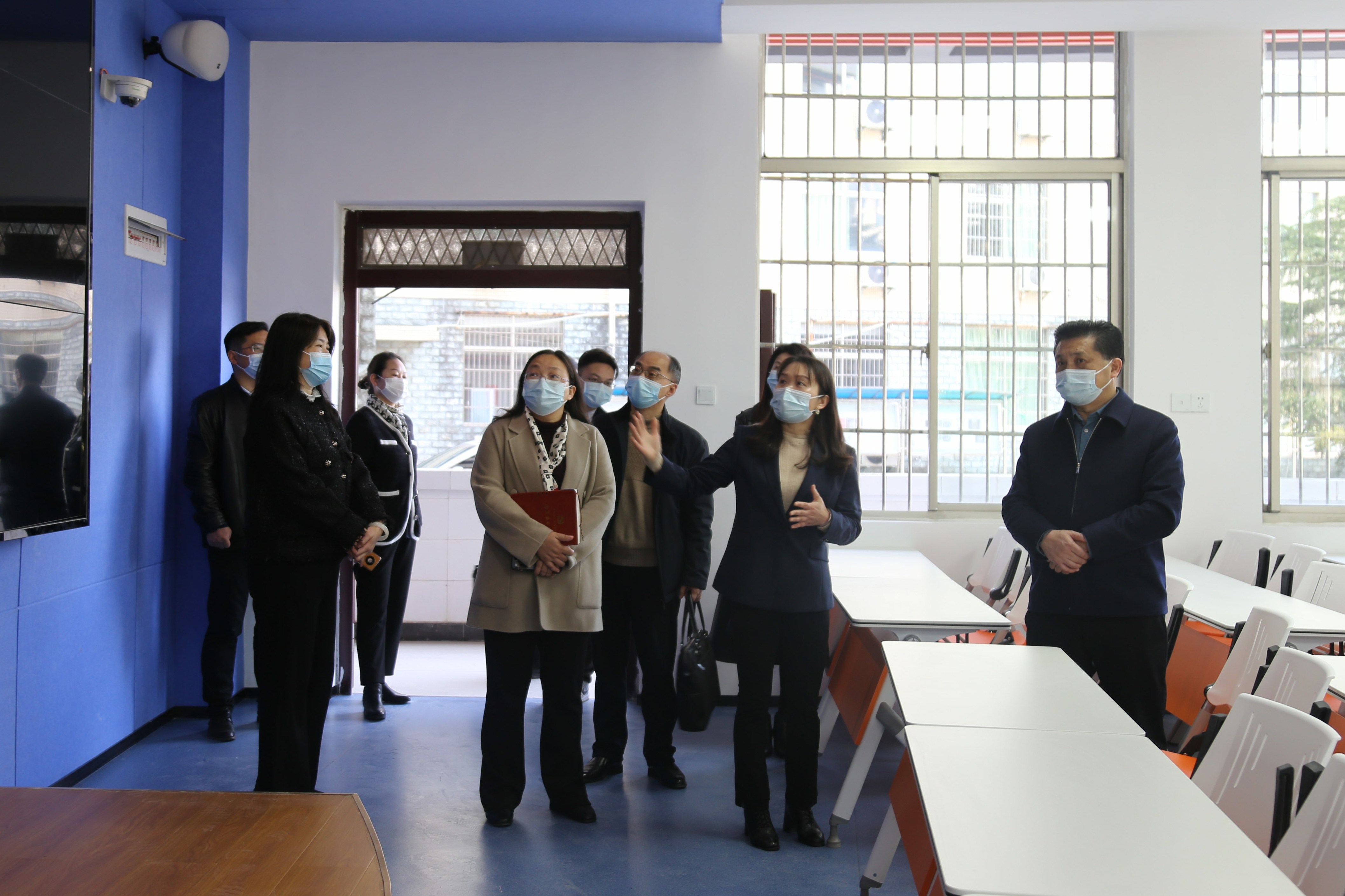 调研组首先参观了学校一号教学楼高端智慧教室、多功能演播厅、艺传实验室和珠宝展馆。