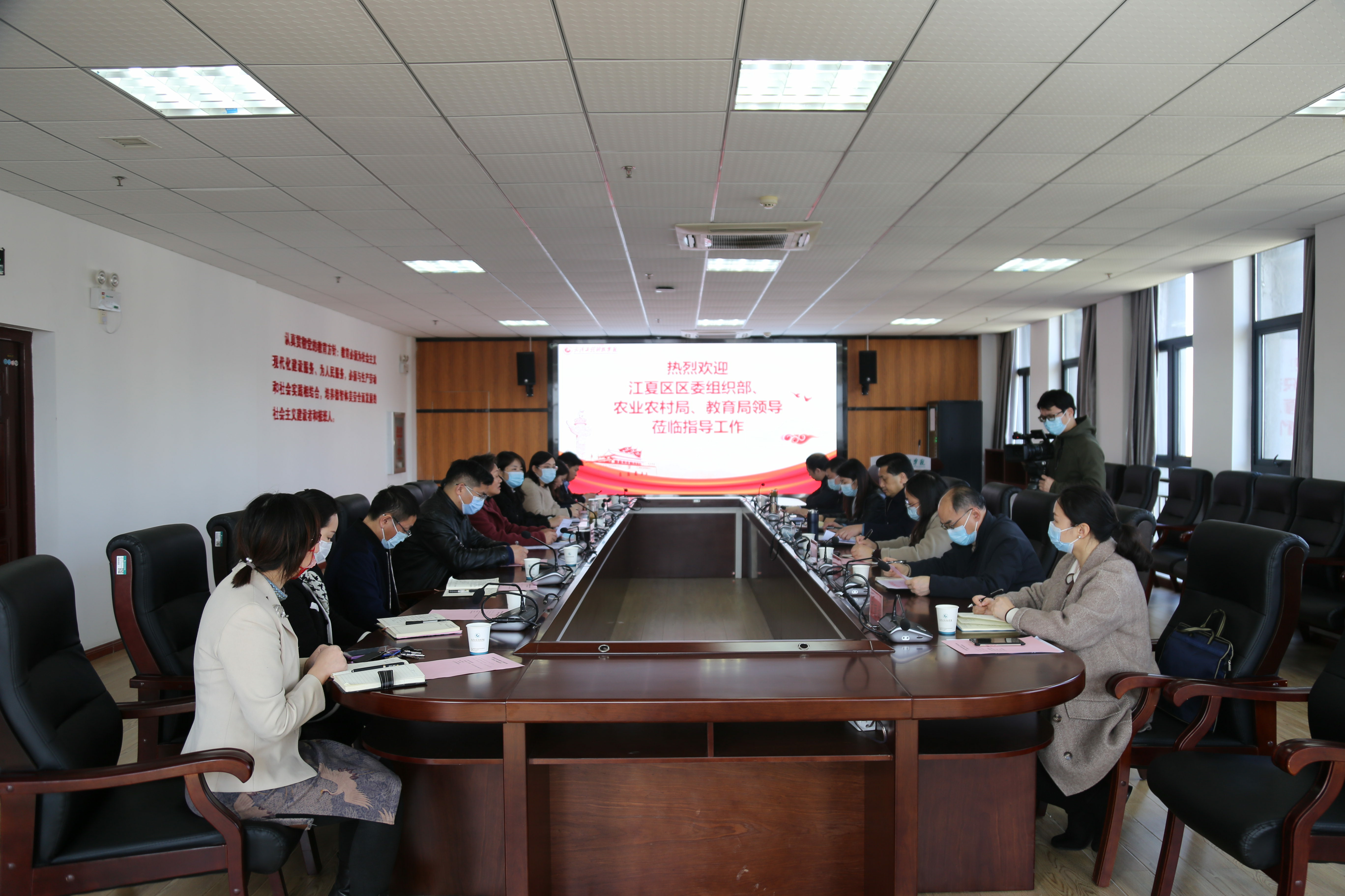会议伊始,高芸代表学校对江夏区委组织部、农业农村局、教育局一行的到来表示欢迎。她表示,武汉工程科技学院乡村振兴学院的成立是贯彻落实中央深入推进农村振兴战略、推动农业农村现代化、促进农业强农村美农民富的具体实践,是续写湖北脱贫攻坚新篇章、打造农村振兴新方式的创新之举,对于全方位服务湖北乡村振兴、推进湖北民办教育高质量发展有着重要的意义,学校乡村振兴学院的发展离不开江夏区委区政府的关心和支持。