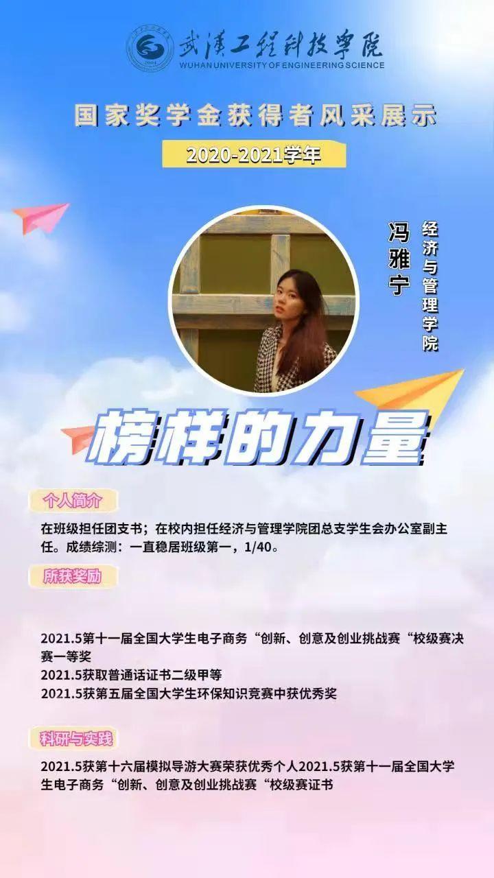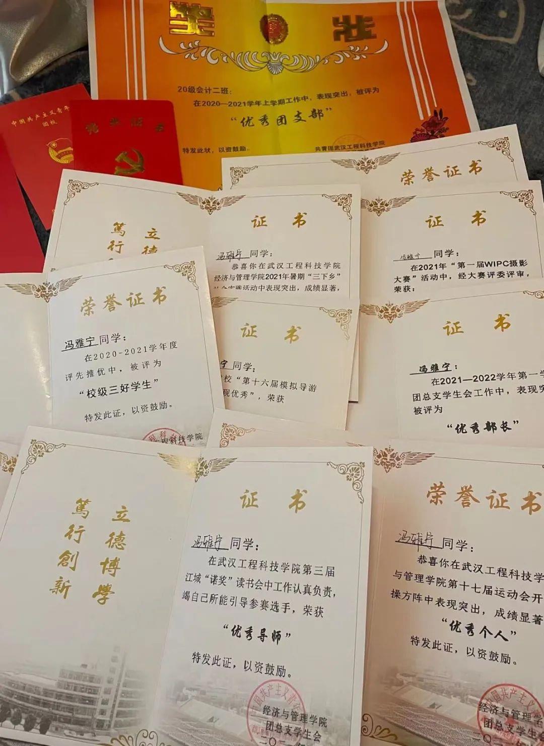谈及这次获得国奖有没有想要感谢的人时,冯雅宁说:“我想要感谢的人太多了,首先还是要感谢父母的养育,感谢辅导员老师以及任课老师的悉心培养,感谢朋友的鼓励。感觉自己真的很幸运,总能遇到一些温暖的人给予向前的力量,让我能够有足够的勇气继续前行。”最后,冯雅宁也想把一直激励她前行的话分享给大家,“Everything that kills me makes me feel alive.”她希望每个人都能够越来越强大,有足够的勇气去面对困难。