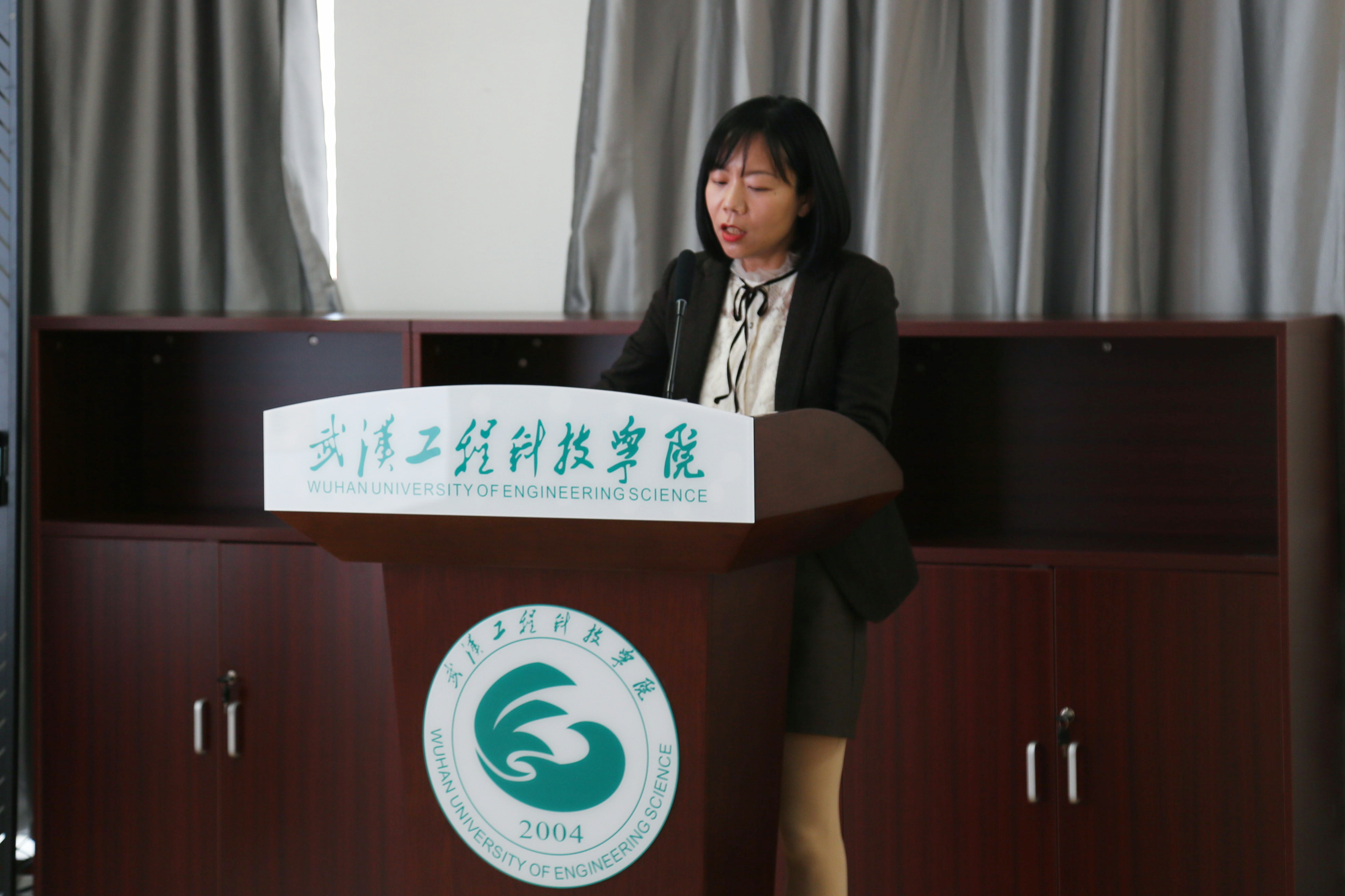 校长助理、教务处处长胡晶晶围绕“一个目标、二个突破口、三个体系、四个平台和五个结合”展开了介绍,明晰了应用型人才培养思路,培育适应地方需求的优势特色专业群,优化人才培养方案,大力推动课程建设,推进教学方式方法改革,产教融合、校企合作,协同育人,做好教学服务。