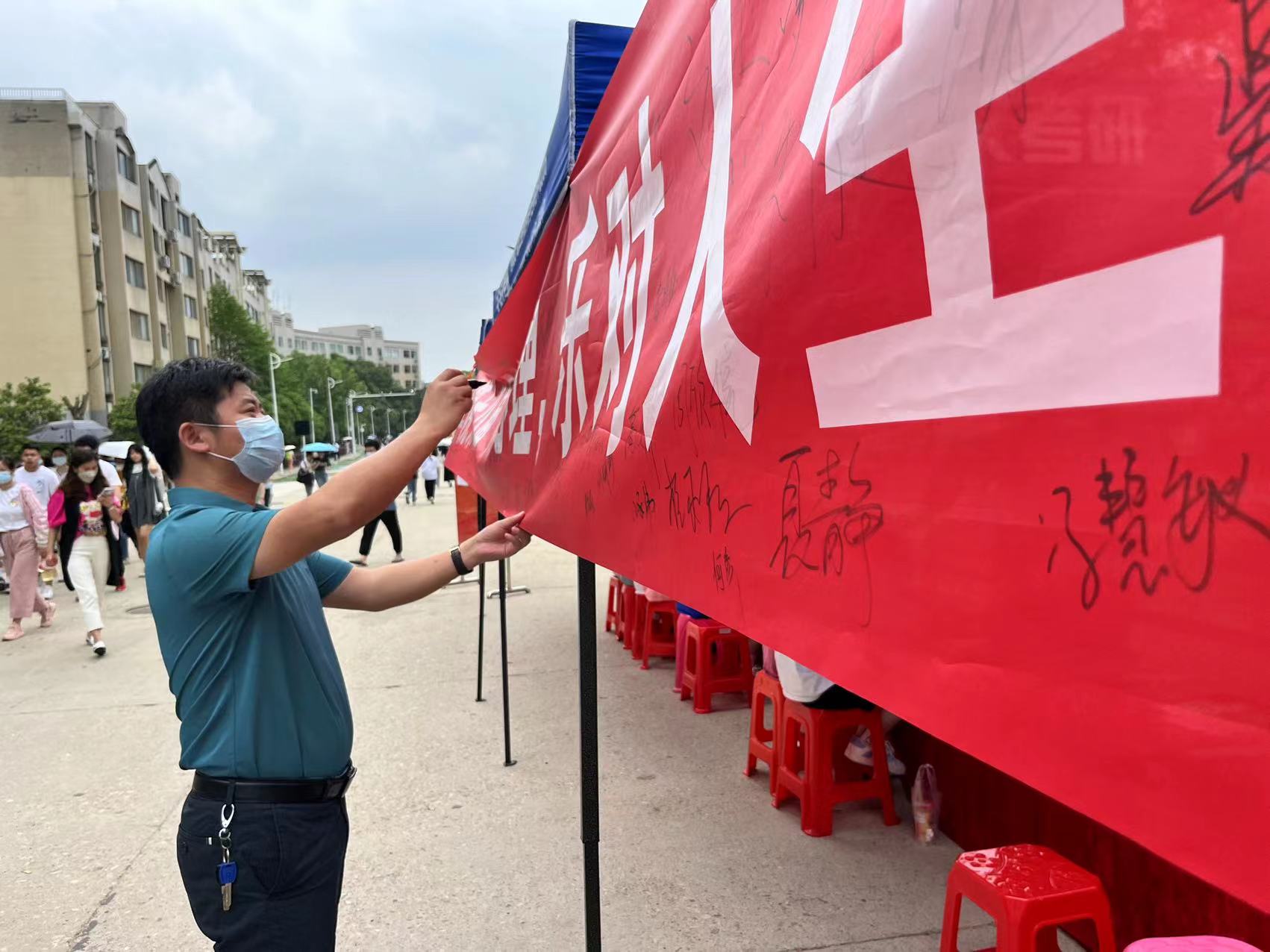 关注心理健康签名:活动开始后,师生员工们纷纷在横幅上认真的签下自己的名字。学校副董事长王加青,副校长、财务总监廖璐莎等校领导也在横幅上郑重签下自己的名字,呼吁大家要关注自身心理健康,培养心理保健意识,树立正确的心理健康观念,优化心理品质,营造和谐的校园环境。